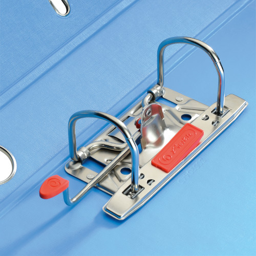 | PP laminated cover,inside & outside protective metal rims, stable reversible spine label logo-embossing below finger hole FSC Mix light blue 1 piece |