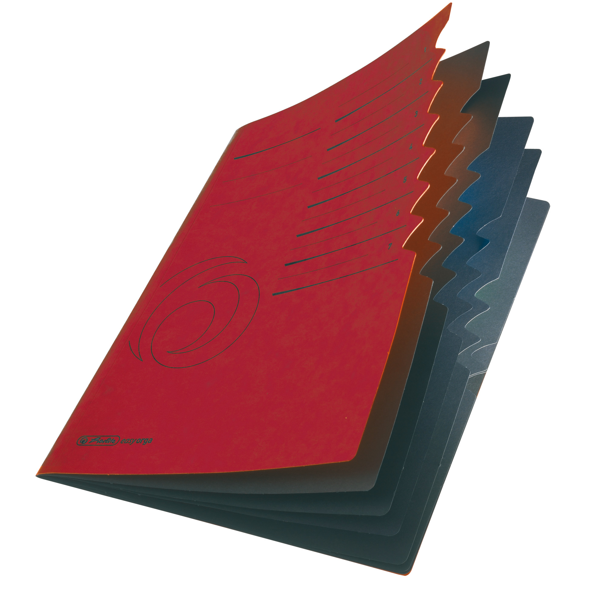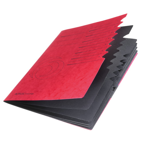 | strong Quality-cardboard cover black manilla-cardboard inside with windows and tabs index-printed, 7 divisions 2 elastics red 1 piece |