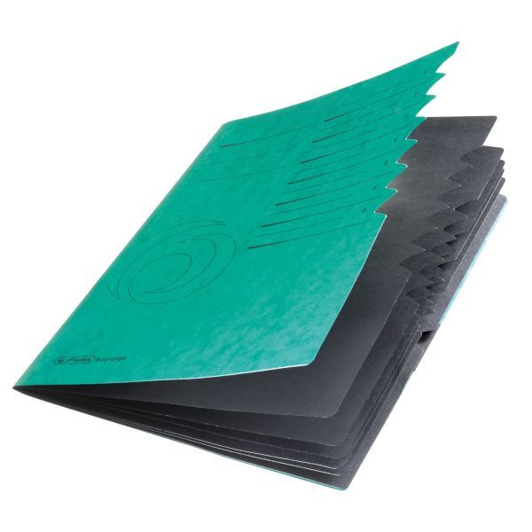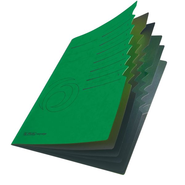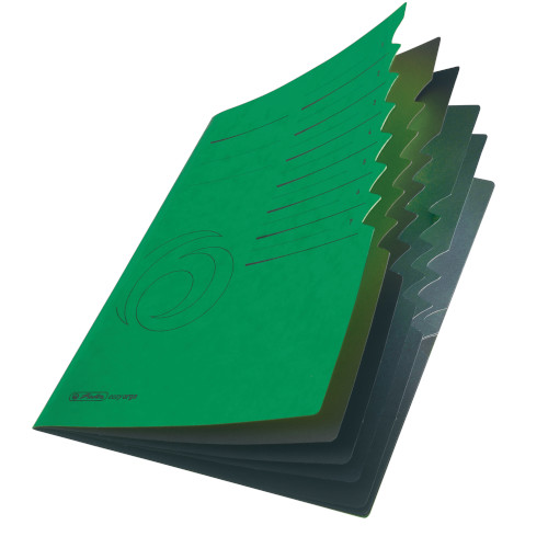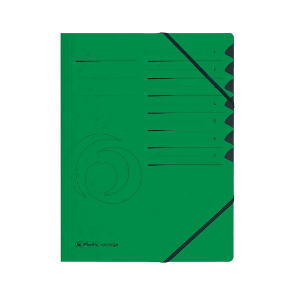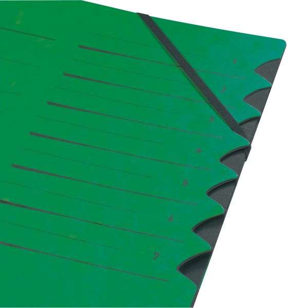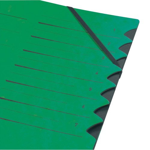 | strong Quality-cardboard cover black manilla-cardboard inside with windows and tabs index-printed, 7 divisions 2 elastics green 1 piece |