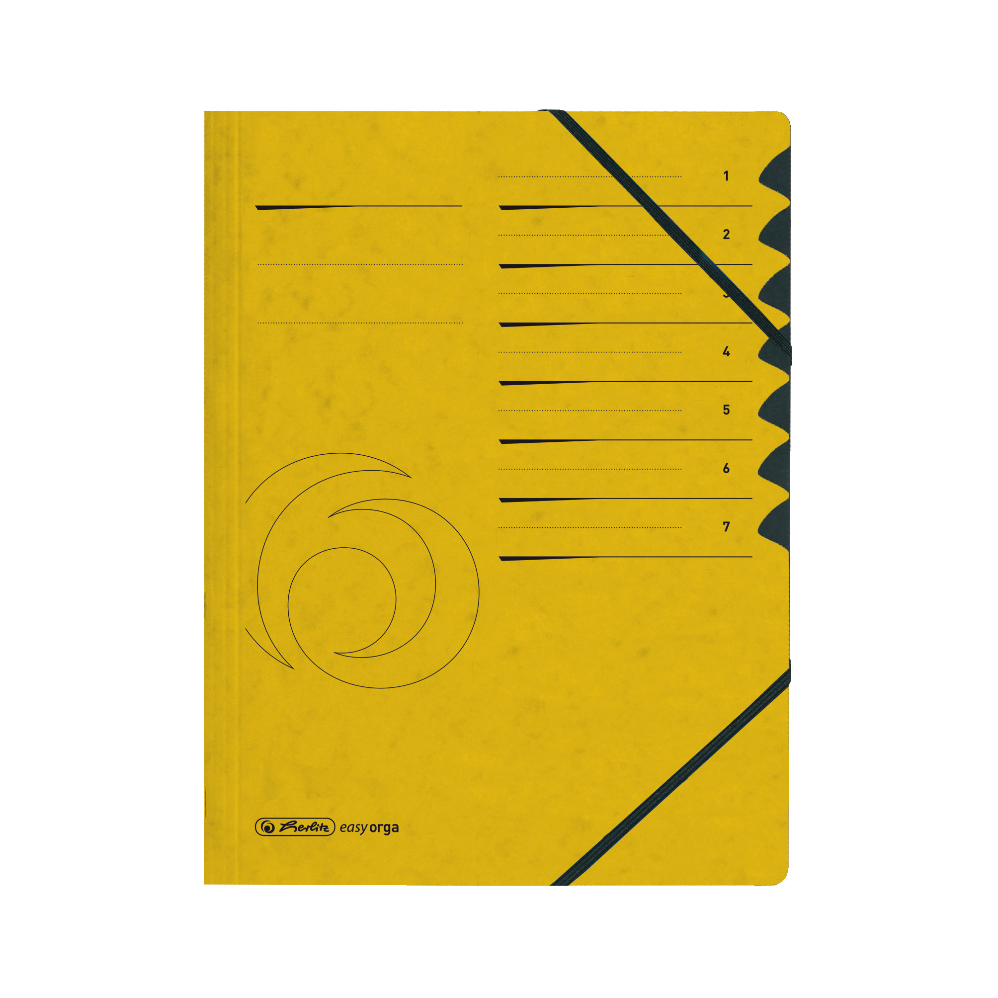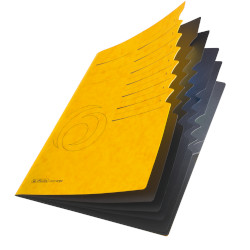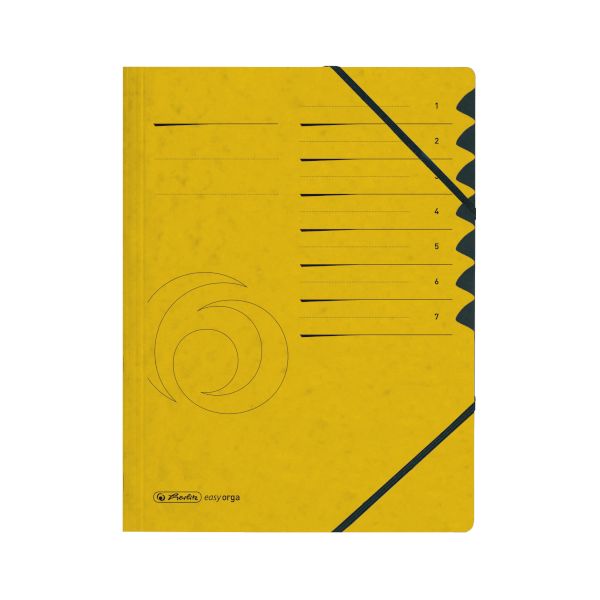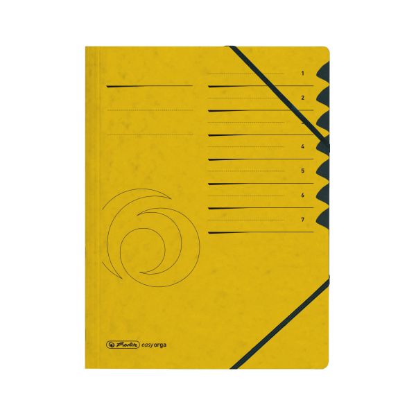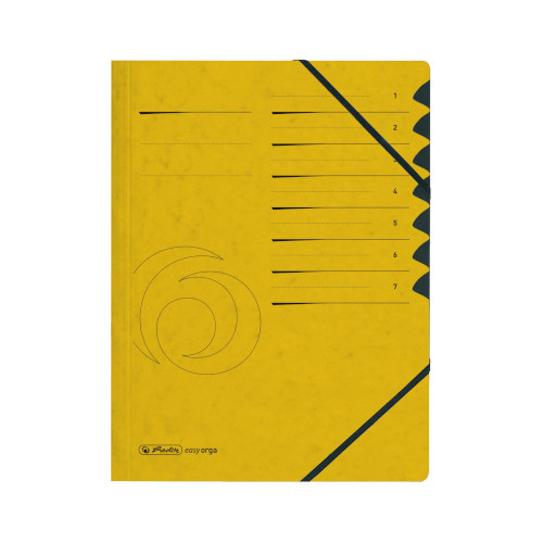 | strong Quality-cardboard cover black manilla-cardboard inside with windows and tabs index-printed, 7 divisions 2 elastics yellow 1 piece |