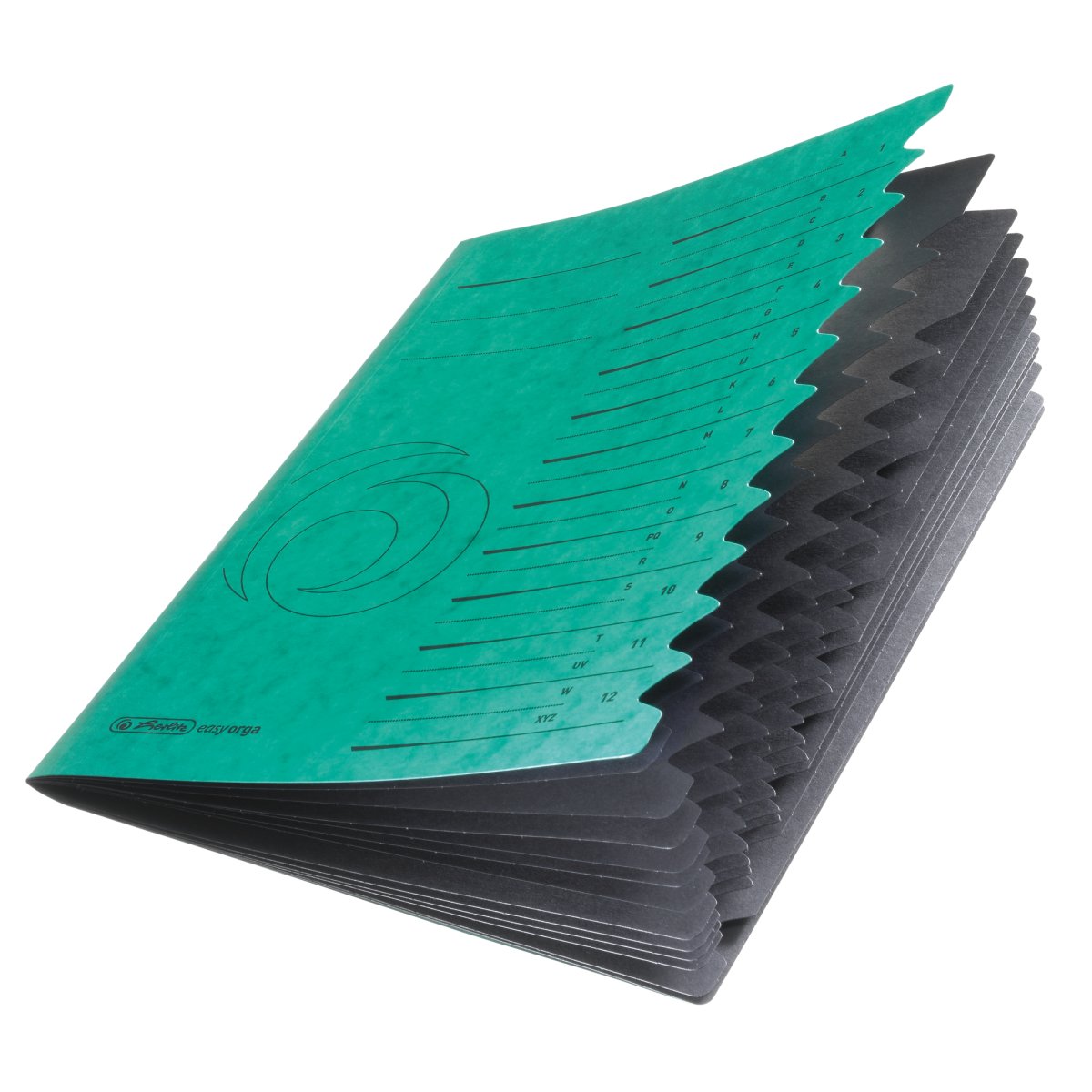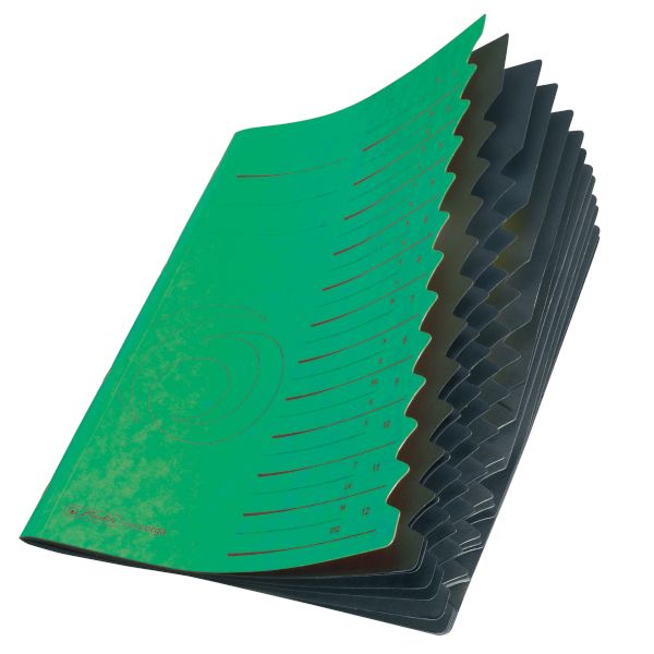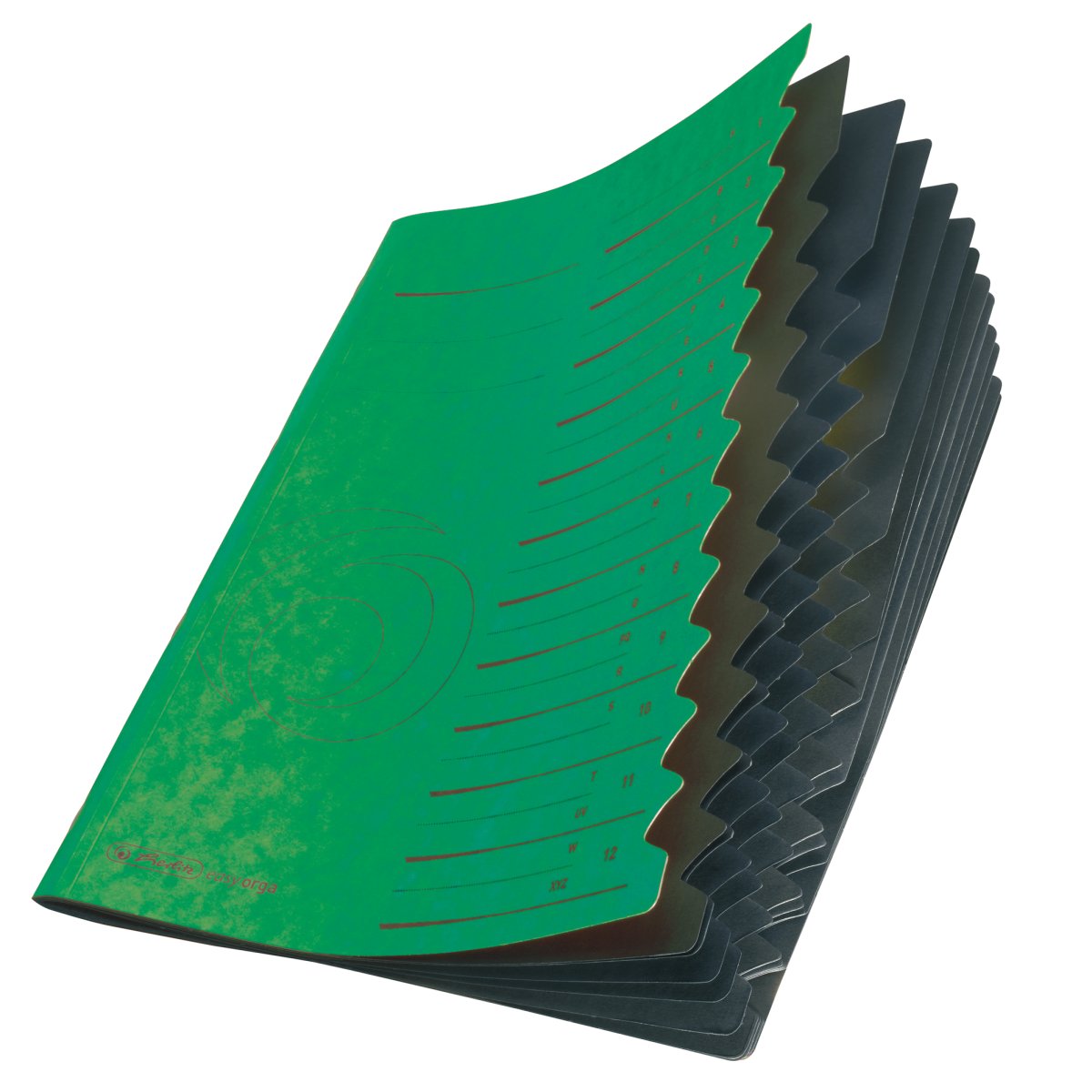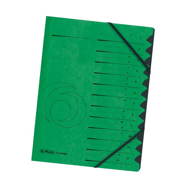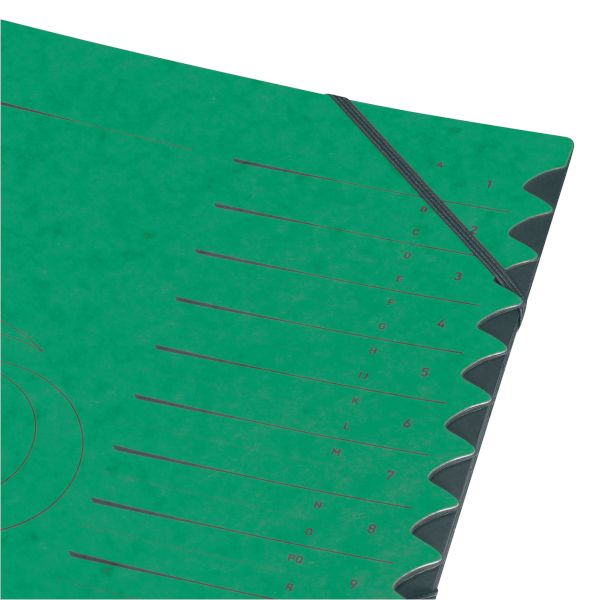 | strong Quality-cardboard cover black manilla-cardboard inside with windows and tabs index-printed, 12 divisions 2 elastics green 1 piece |