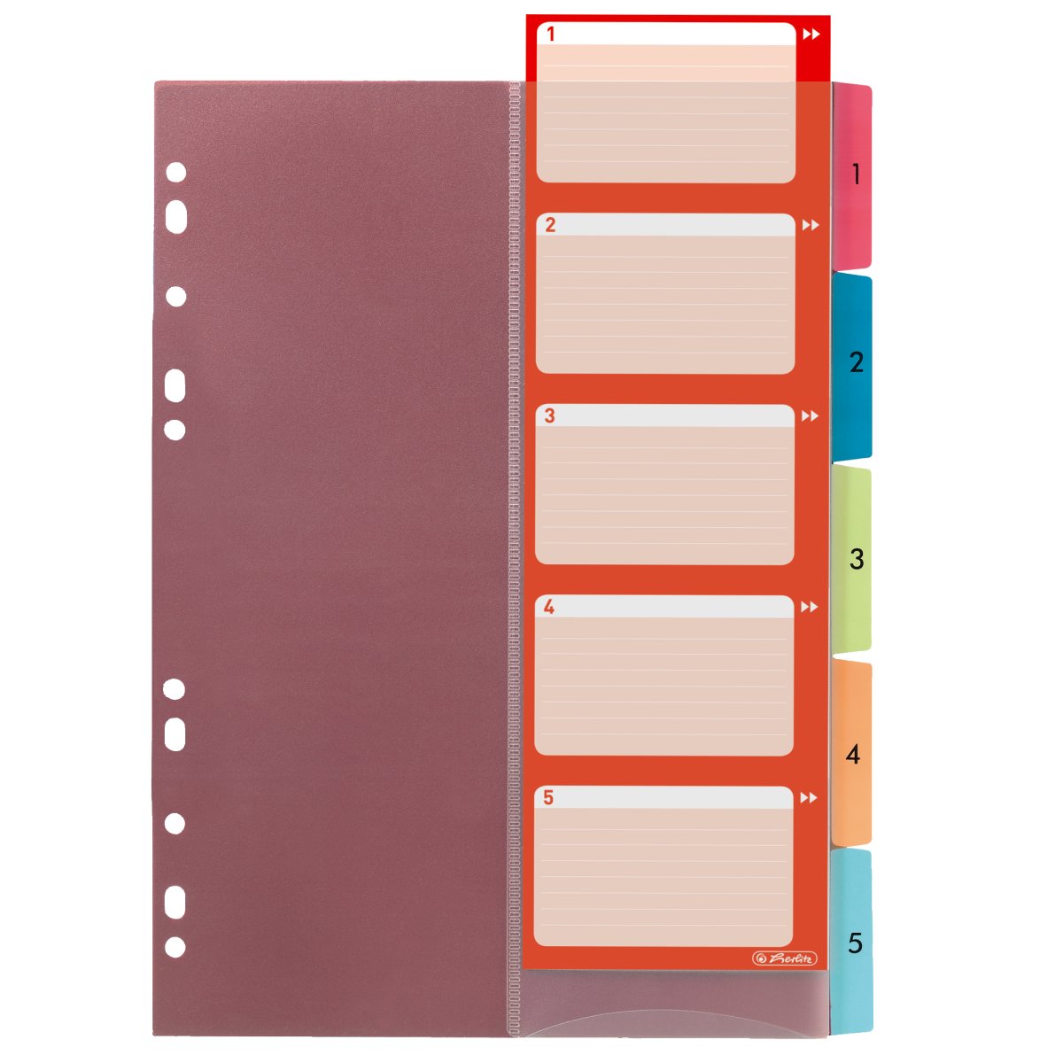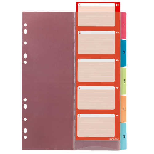 | PP-foil tabs with index 1-5 5 parts, europunched with index pocket and index sheet 5 colours 1 piece |