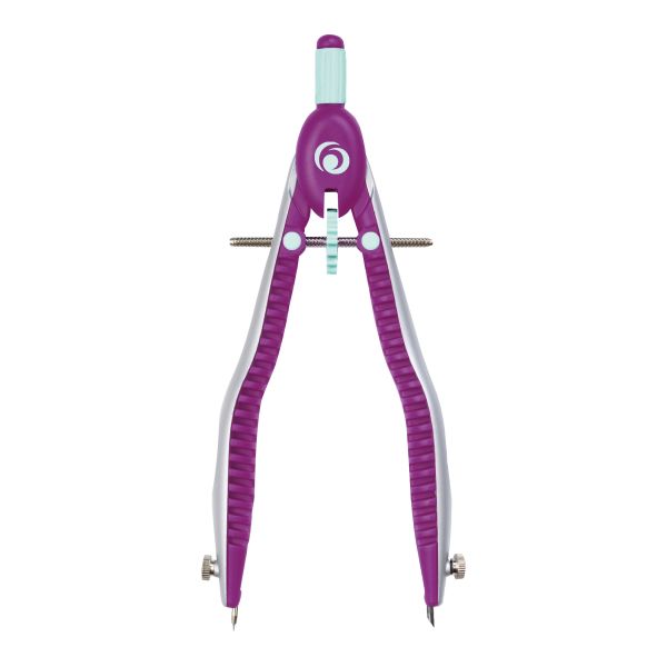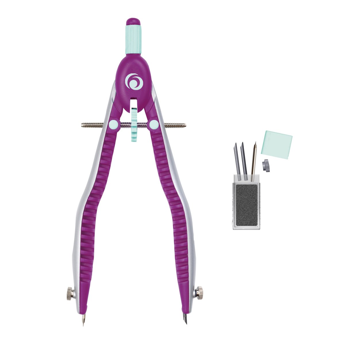 giant bow compass incl. spare lead box with set screw, spare needle and two leads possibility to sharpen the lead purple/mint in suspension package |