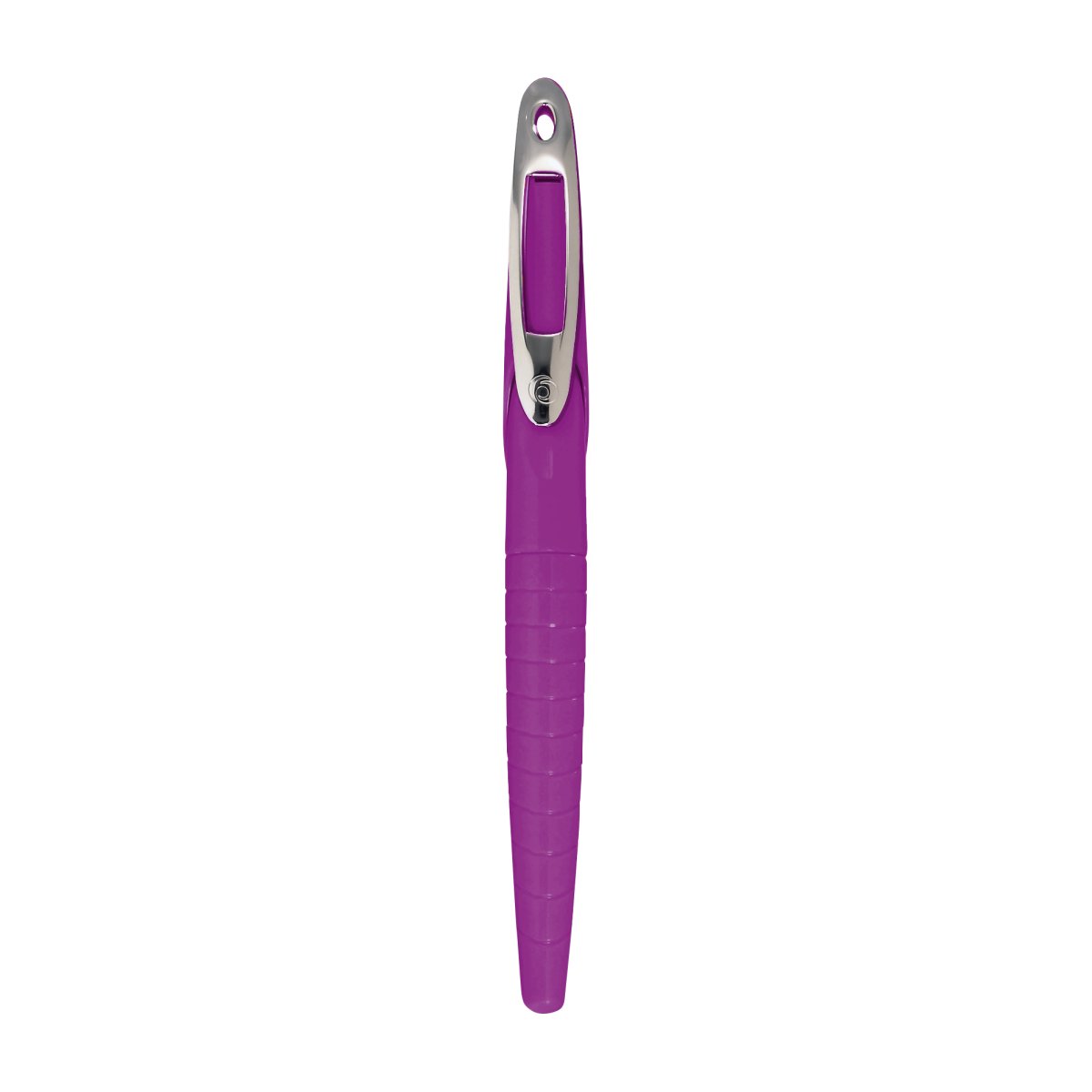 | plastic, metal ergonomic rubber grip zone, with metal clip, stainless steel L-nib, 1 cartridge blue included purple/mint 1 piece in foil case |