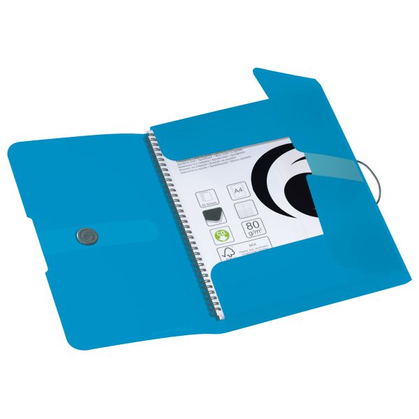 | PP-foil with design-print 3 flaps elastic cord, round with whirl button transparent blue 1 piece |