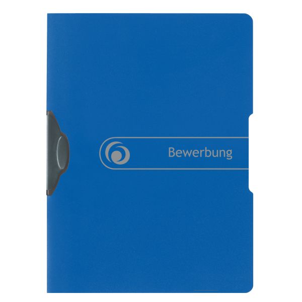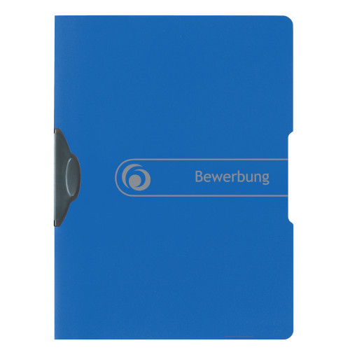 | PP-foil clip file for unpunched papers capacity approx. 30 sheets with print "Bewerbung" blue 1 piece |
