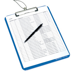 USP | Klemmbrett A4; Mit vernickelter Klemmmechanik; Mit praktischer Aufhängeöse; Aus Kunststoff; Farbe: Opak Blau |