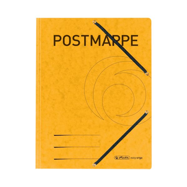 | strong Quality-cardboard 3 flaps with 2 elastics with print "Postmappe" FSC Mix yellow 1 piece |
