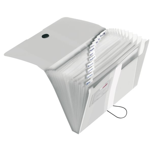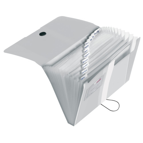 PP-foil with design-print, with 12 expand. compartments,writeable tabs f.index with a pocket for business card elastic cord, round, w.whirl button transparent colourless 1 piece |