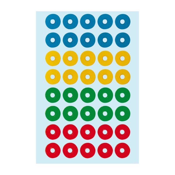 160 pieces, 4 sheets, 13mm single article with insert card europunched, 8,5x15,8cm continually renewed, price group: A sheet size 8x12,5cm, colored cellophaned |