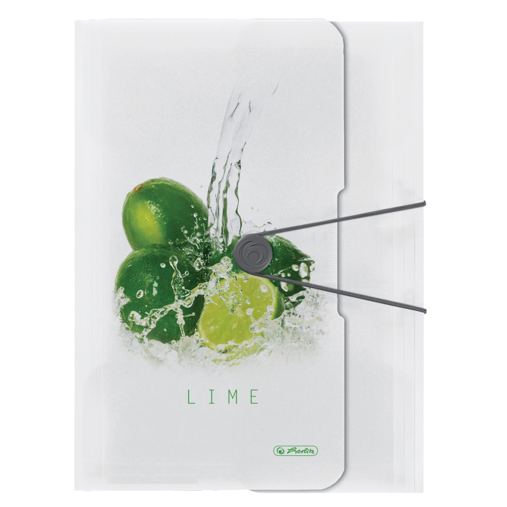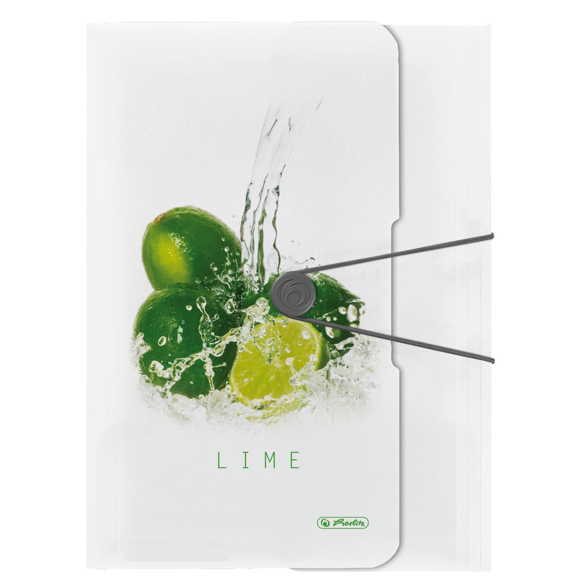 PP-foil 3 flaps elastic cord, round with whirl button motif Fresh Fruit Lime 1 piece |