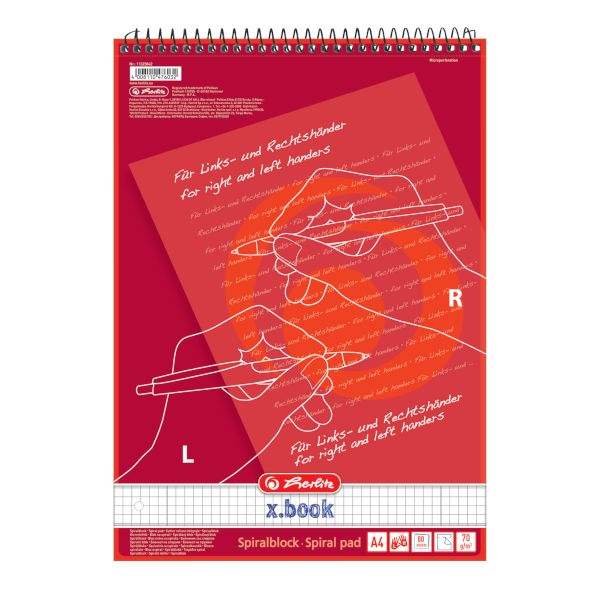 woodfree paper, 70gsm white 80 sheet no.28 (squared with 2 margins) punched, microperforation for right- and left-handers round spiral head side, 1 motif 1 piece |