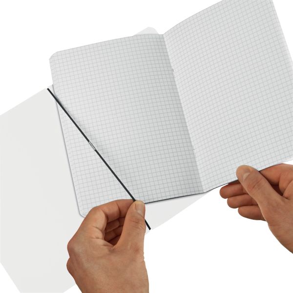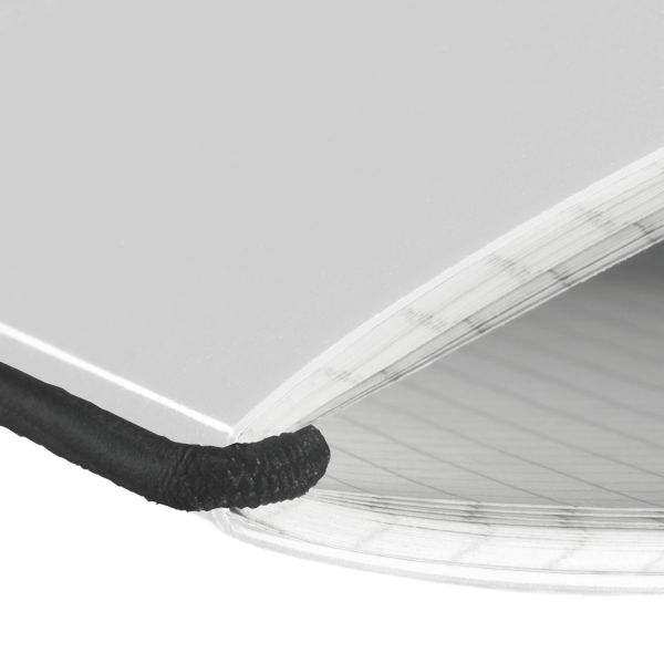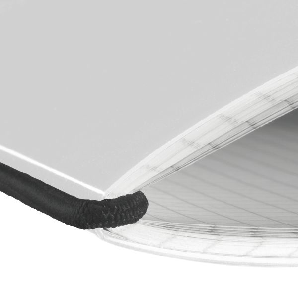 | woodfree paper, 80gsm white 40 sheets, squared (5x5) PP cover, transparent rounded edges elastic for closure black 1 piece |