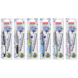 | plastic, metal ergonomic rubber grip zone, with metal clip, with erasable soft gel refill, in six attractive colours, 1 gel refill blue included assorted colours 1 piece on blistercard |
