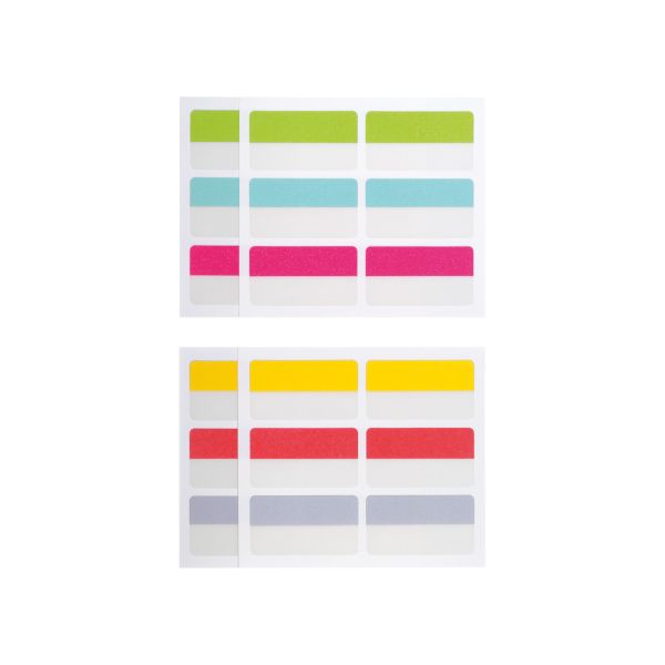 | PET foil 24 pieces 22x40mm, 6 colored sorted á 4 pieces categorate important information permanent glue colored sorted 24 pieces in foil hanging package  |