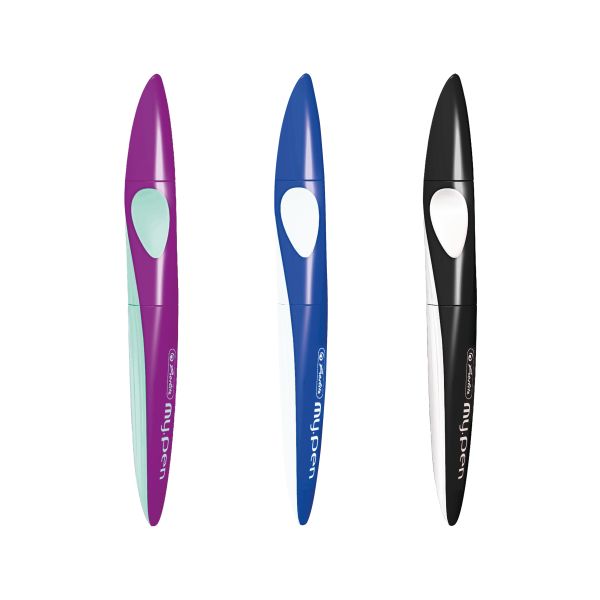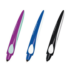 | plastic with 2 cartridges for rollerballs with ergonomic grip zone for left- and right handers in 3 trendy colour combinations 1 piece in foil case |