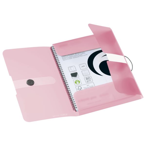 | PP-foil with design-print 3 flaps elastic cord, round with whirl button transparent rose 1 piece |