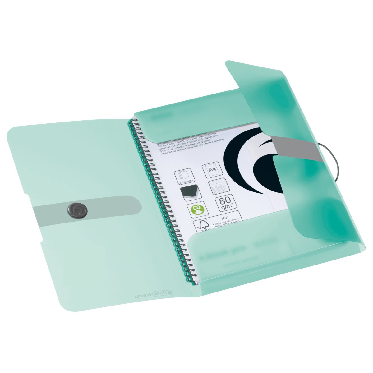 | PP-foil with design-print 3 flaps elastic cord, round with whirl button transparent mint 1 piece |