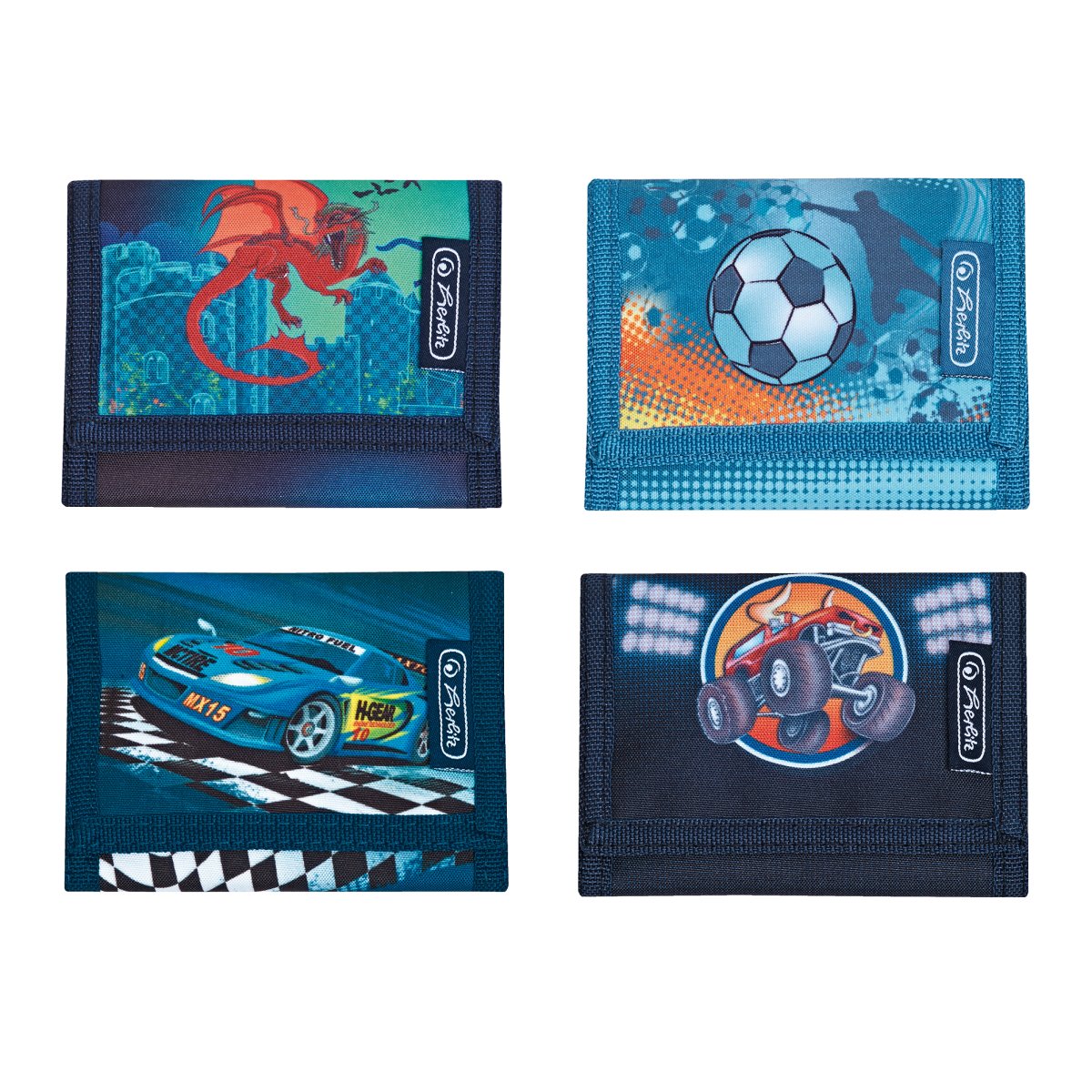 | polyester 11,5 x 8 x 2 cm hook and loop fastener, bank note case, key ring, zipper case dragon, soccer, super racer, monster truck 4 designs assorted |