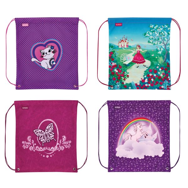 | polyester 36,5 x 40,5 x 0,5 cm closable with cord kitten, princess rosa, rose butterfly, unicorn 4 designs assorted |