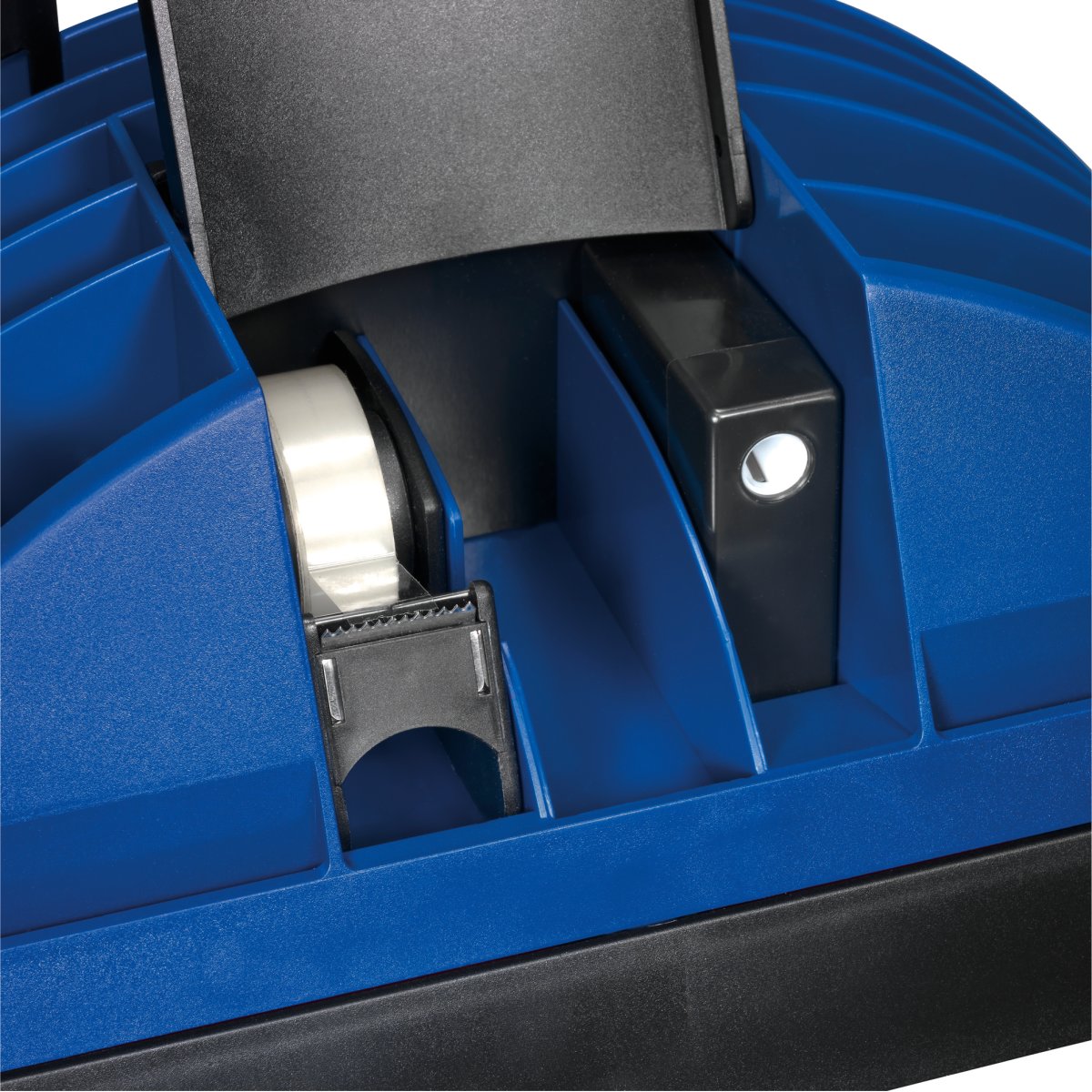 | plastic with adhesive tape and tape dispenser, pencil sharpener and paper holder blue 1 piece in box |
