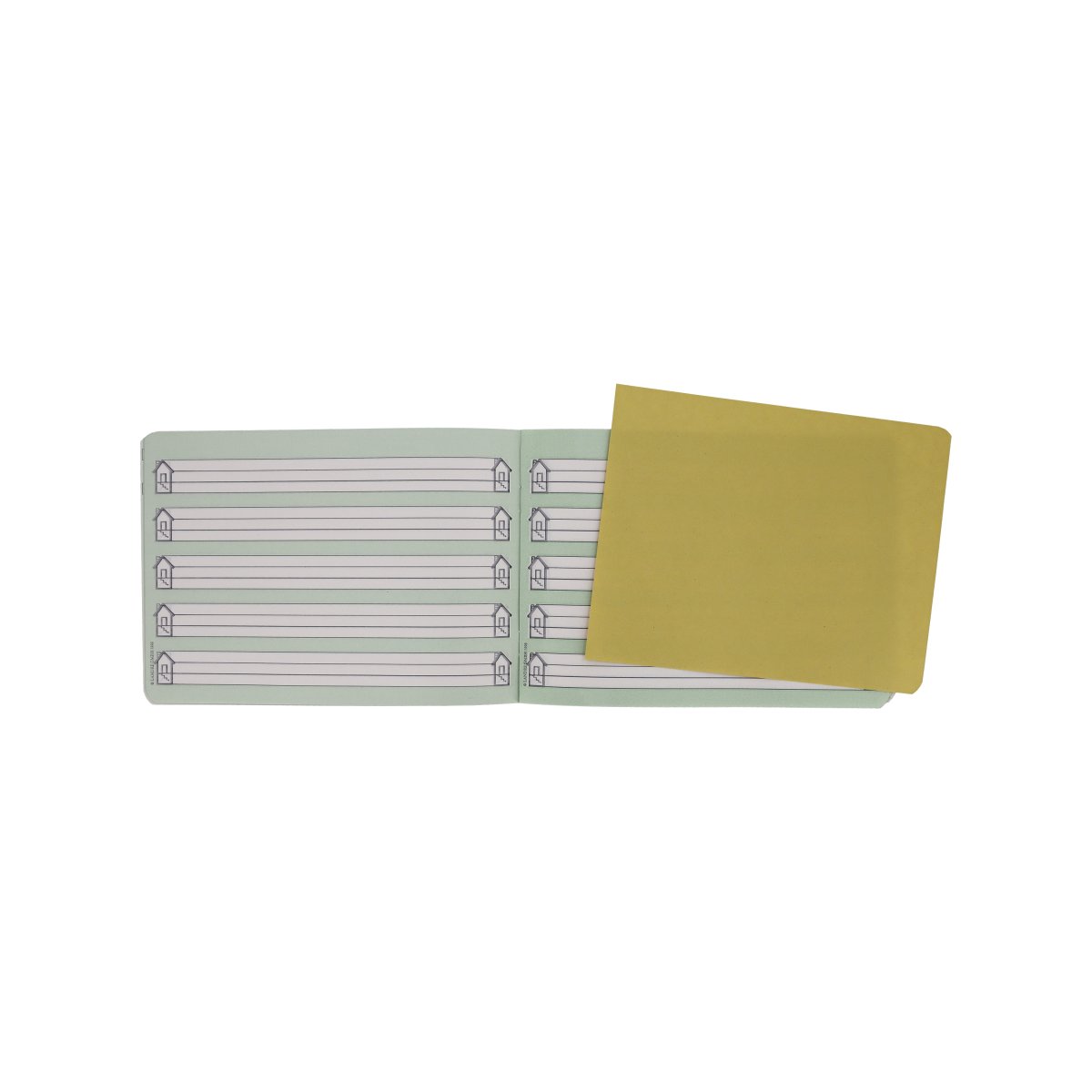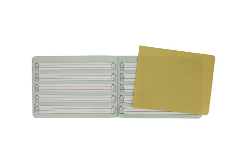 | woodfree paper, 80gsm white FSC Mix, 16 sheets, no.0 with reinforced base line and house to simplify learning to write coloured background rounded edges, 1 motif 1 piece |