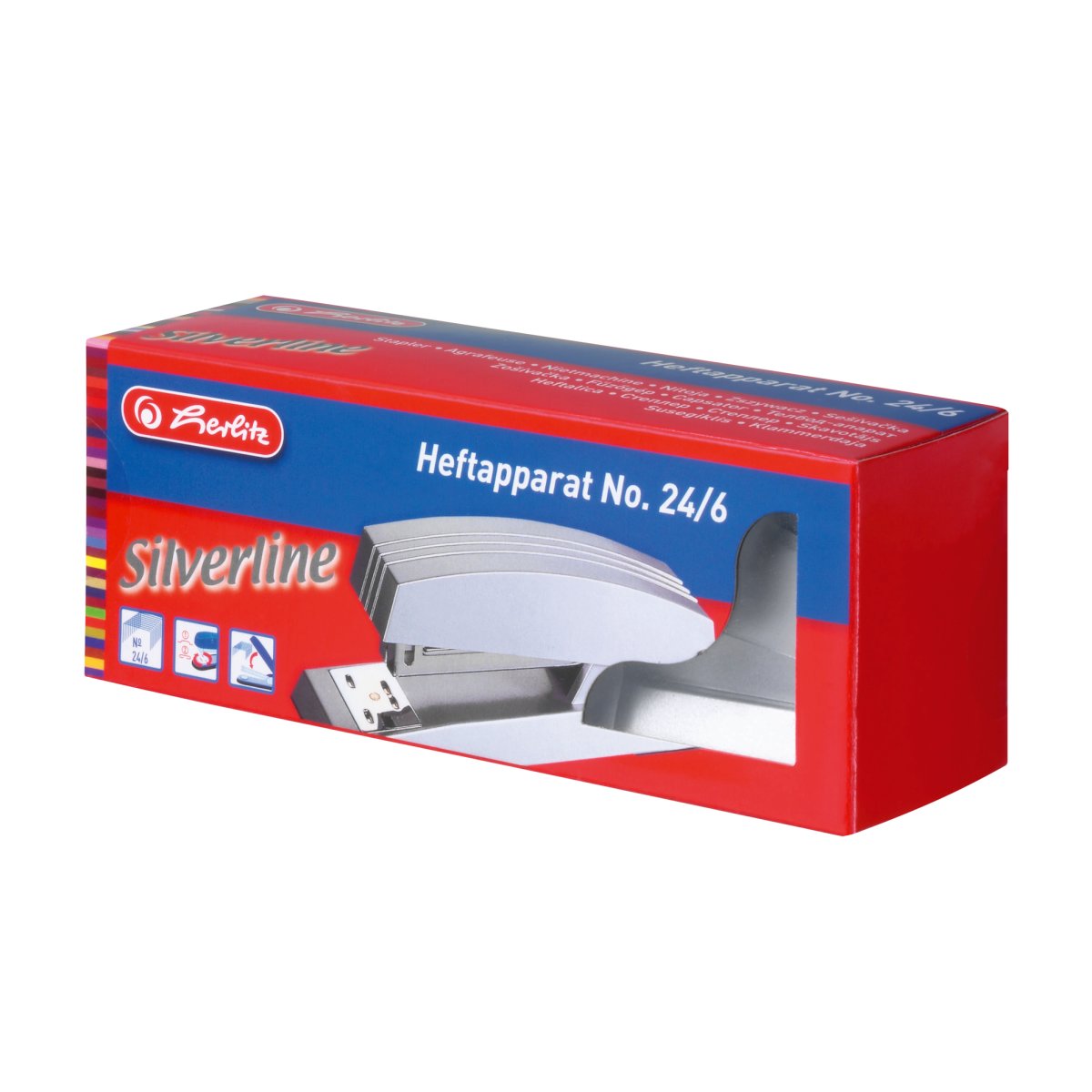 | plastic, metal mechanism for staples No.24/6 stapling base for inward and outward stapling, non-slip silver 1 piece in cardboard box  |