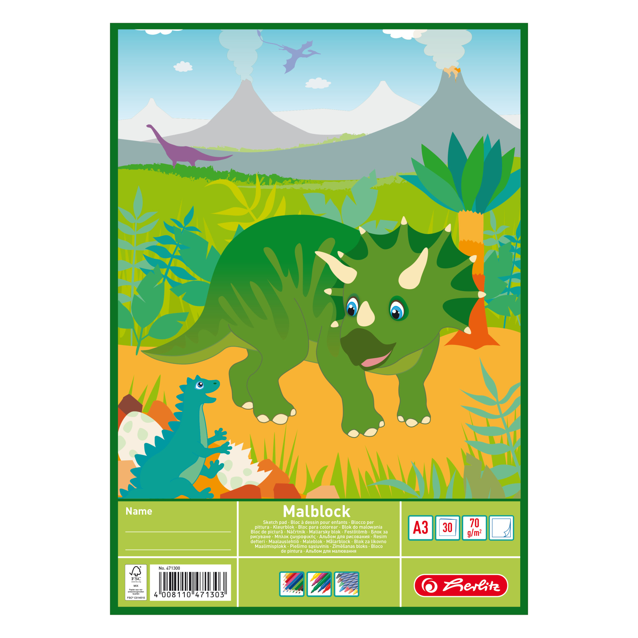USP | Malblock A3; Ideal für das Malen mit Buntstiften, Fasermalern und Wachsmalern; An der langen Seite geleimt; Stabile Rückenpappe: 600g/m²; Mit Namensfeld für die individuelle Beschriftung; Ansprechende Kindermotive; Papier FSC® zertifiziert, Grammatur: 70g/m²; 30 Blatt; Made in Germany, Keine Motivauswahl möglich |