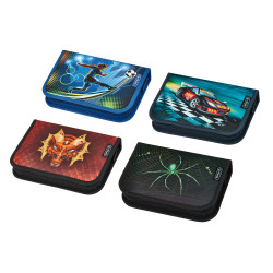 | polyester 19,3 x 13,5 x 3,5 cm empty, 1 flap, coloured inner lining Soccer, Super Racer, Dragon, Spider 4 designs assorted |