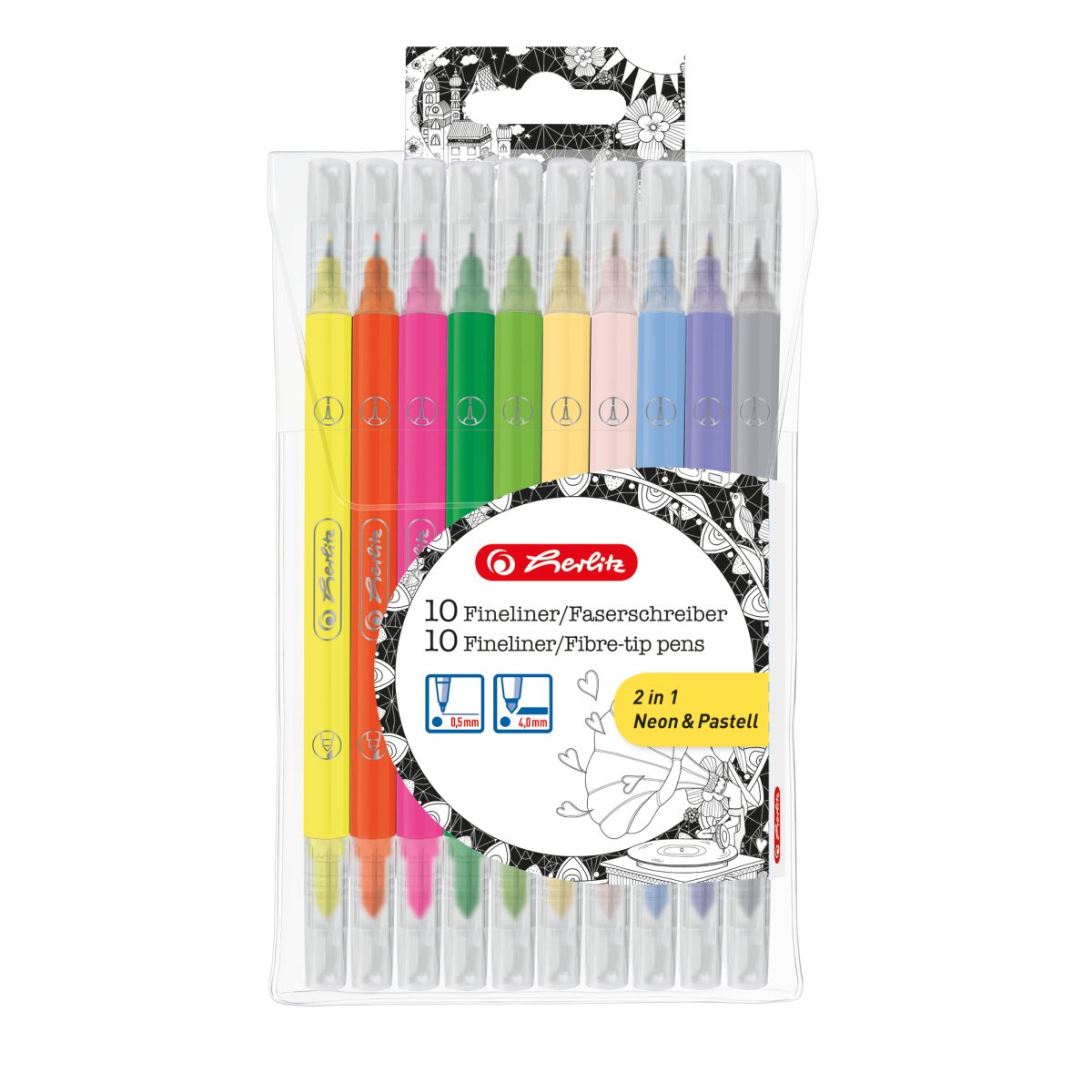 coloring for adults 10 colours neon/pastel 2 tips Fineliner and fiber-tip food colours ass. colours 10 pieces in foil case |