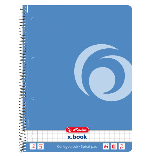 woodfree paper, 70gsm white 80 sheet no.28 (squared with 2 margins) punched, microperforation round spiral, rounded edges motif baltic blue 1 piece |