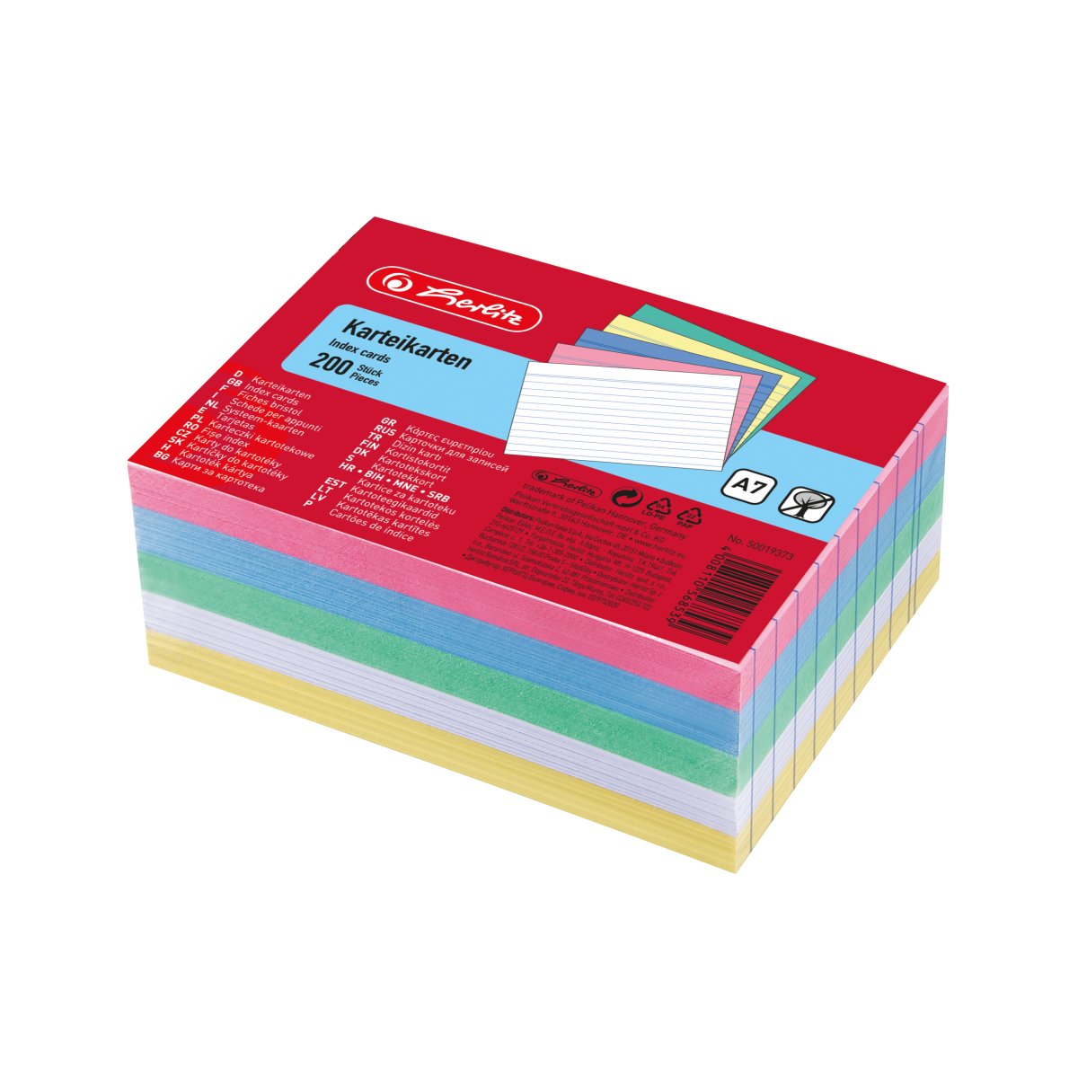 woodfree paper 175g/m², white 170g/m² 200 pieces ruled colors: each 40 x rose-pink, blue, yellow, white, green assorted colors 200 pieces, shrink wrapped |