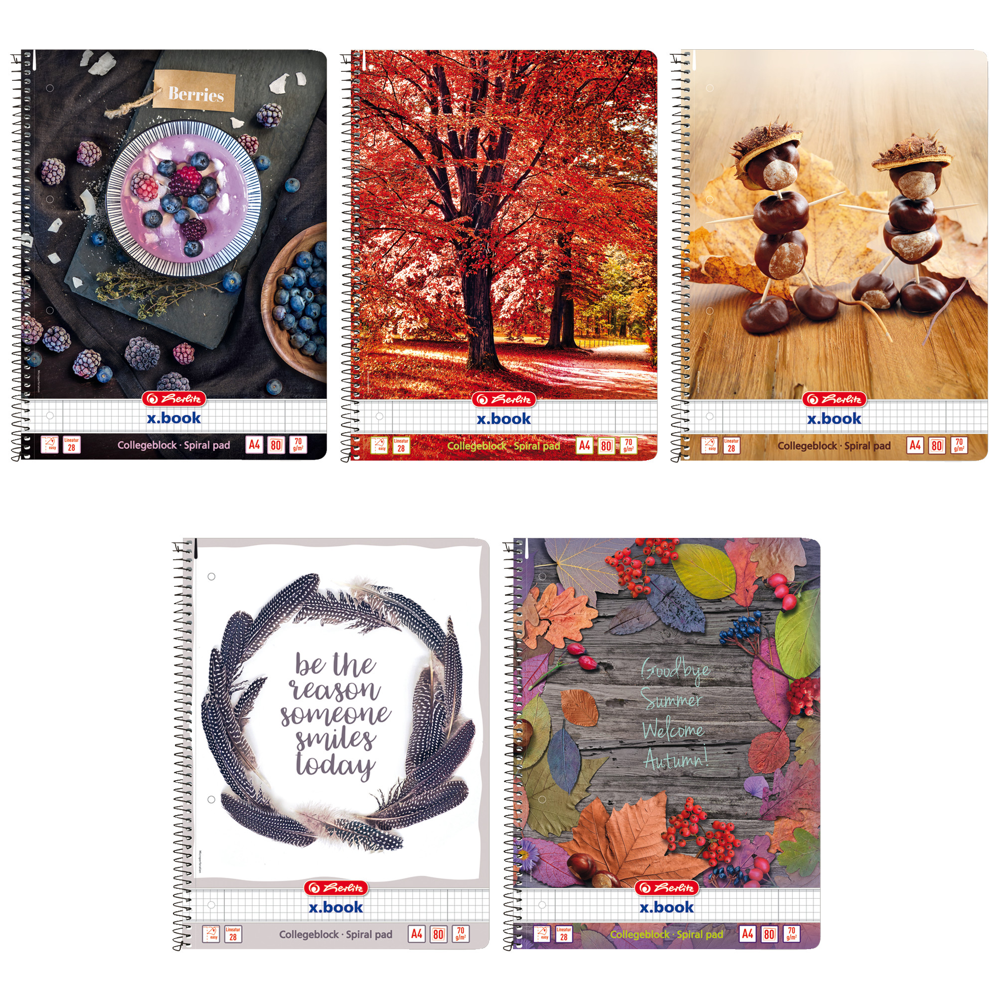 woodfree paper, 70gsm white 70 sheets no.28 (squared with 2 margins) punched, microperforation round spiral, rounded edges 5 motifs 1 piece |