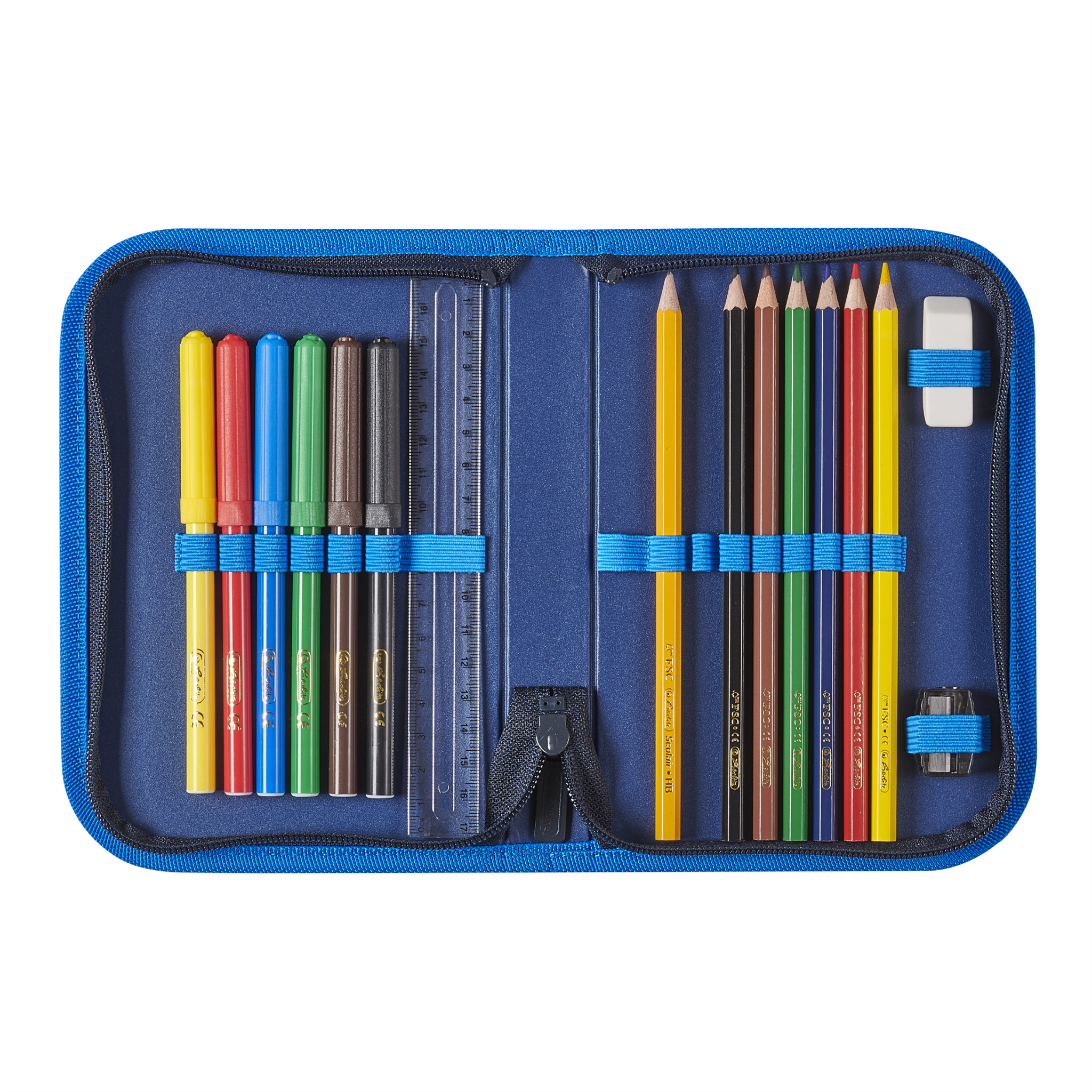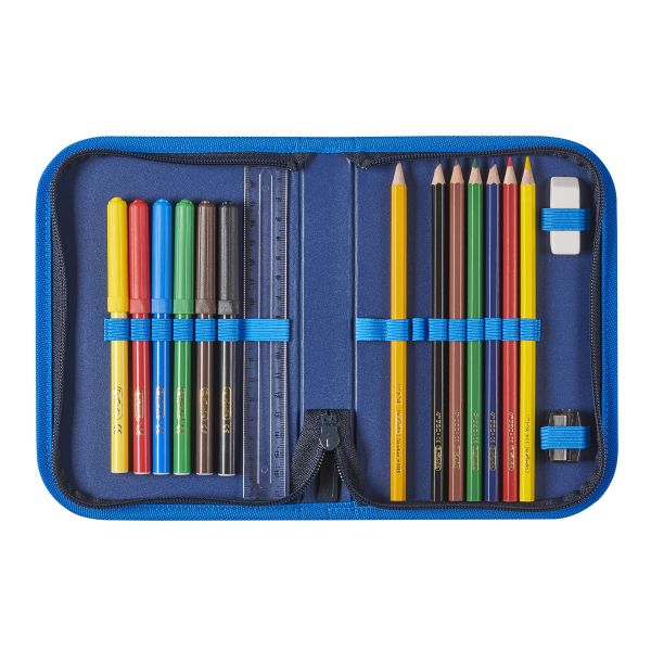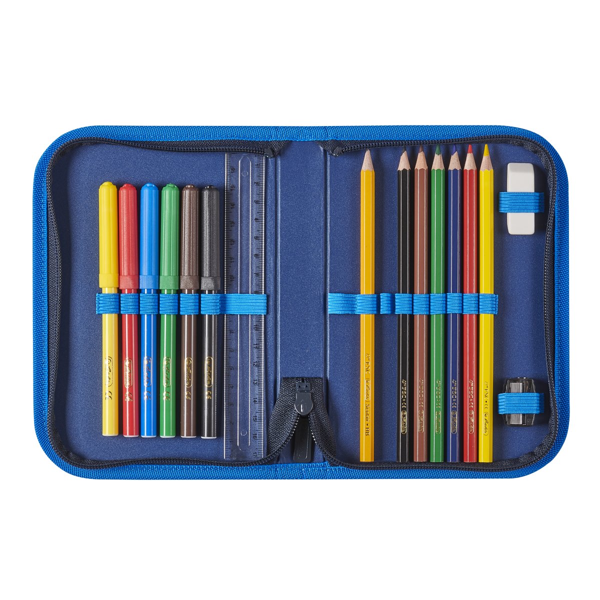 polyester 37 x 31 x 22 cm click lock, ergon. backpadding chest strap, 3M material from FSC™ certified pencils silkscreen filled with pencil case 16pcs., pencil pouch round and sports sac |