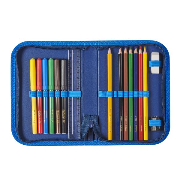 polyester 37 x 31 x 22 cm click lock, ergon. backpadding chest strap, 3M material from FSC™ certified pencils 3D rubber badge filled with pencil case 16pcs., pencil pouch round and sports sac |