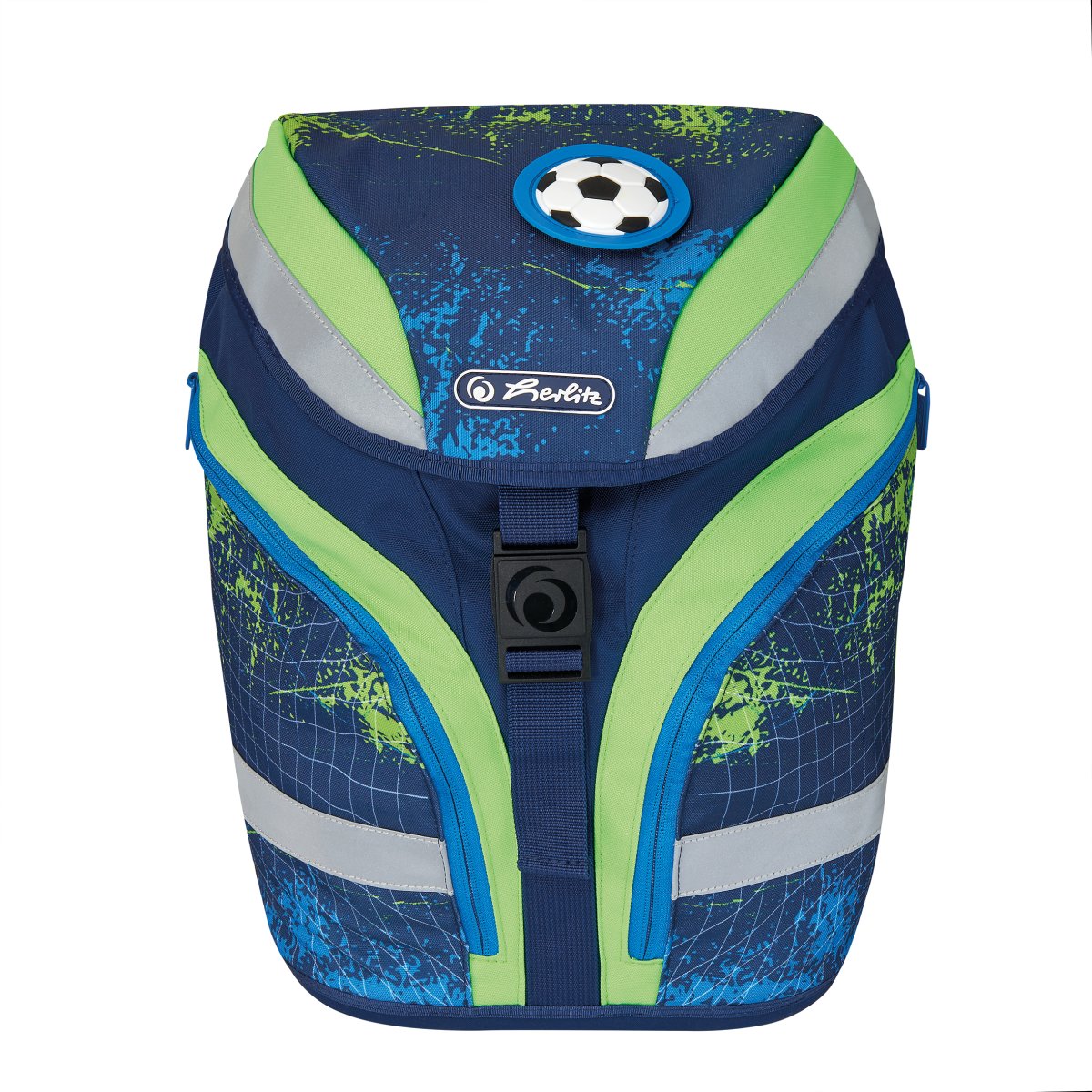 | polyester 40 x 28 x 23 cm magnetic lock, ergonomic system "ergoActive" adjustable chest strap removable hip strap Orafol material, fluorescent material 2 removable applications with velcro lunch box, pencil case 17pcs. from FSC certified pencils sports sac and pp file box |