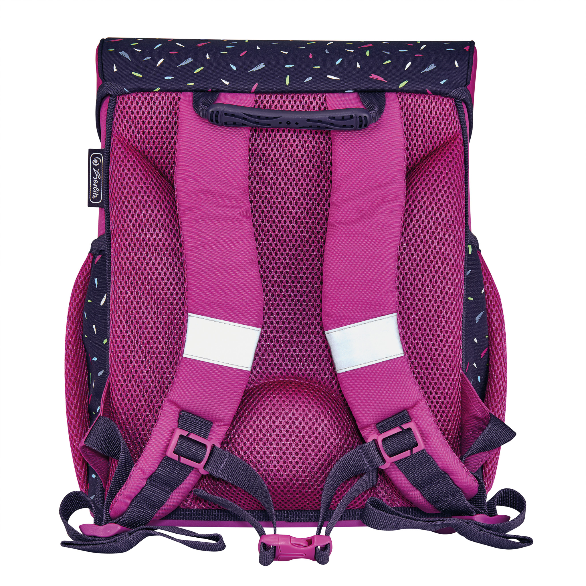 polyester 37 x 31 x 22 cm click lock with reflector ergonomically back padding adjustable shoulder straps stable bottom plate chest strap Orafol material light weight under 1kg empty |