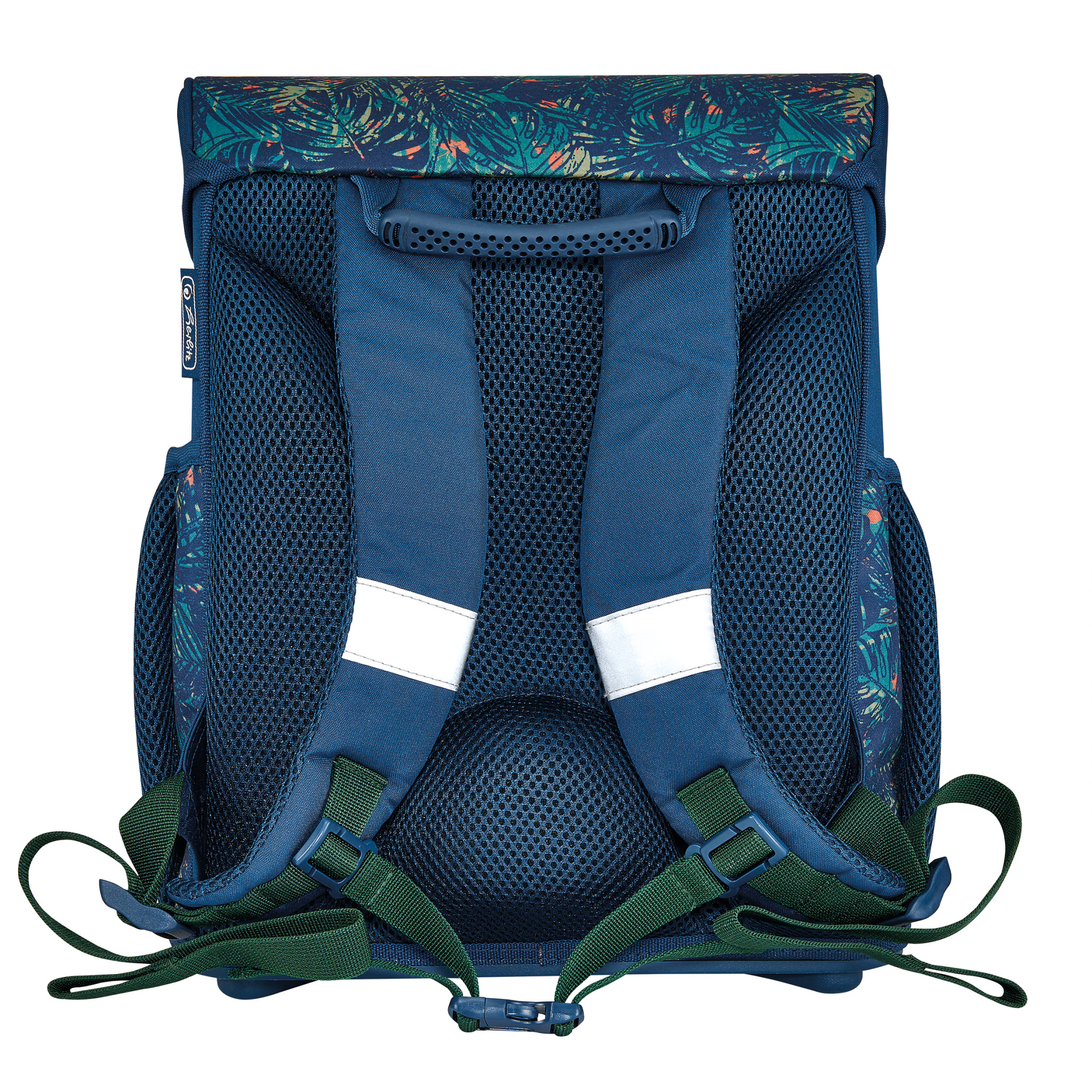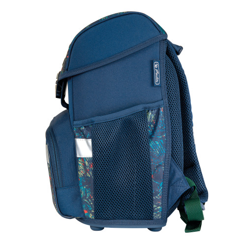 polyester 37 x 31 x 22 cm click lock with reflector ergonomically back padding adjustable shoulder straps stable bottom plate chest strap Orafol material light weight under 1kg empty |