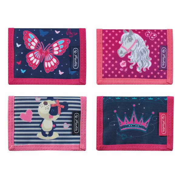 | polyester 11,5 x 8 x 2 cm hook and loop fastener, bank note case, key ring, zipper case Butterfly, Horse, Sweety, Crown 4 designs assorted |