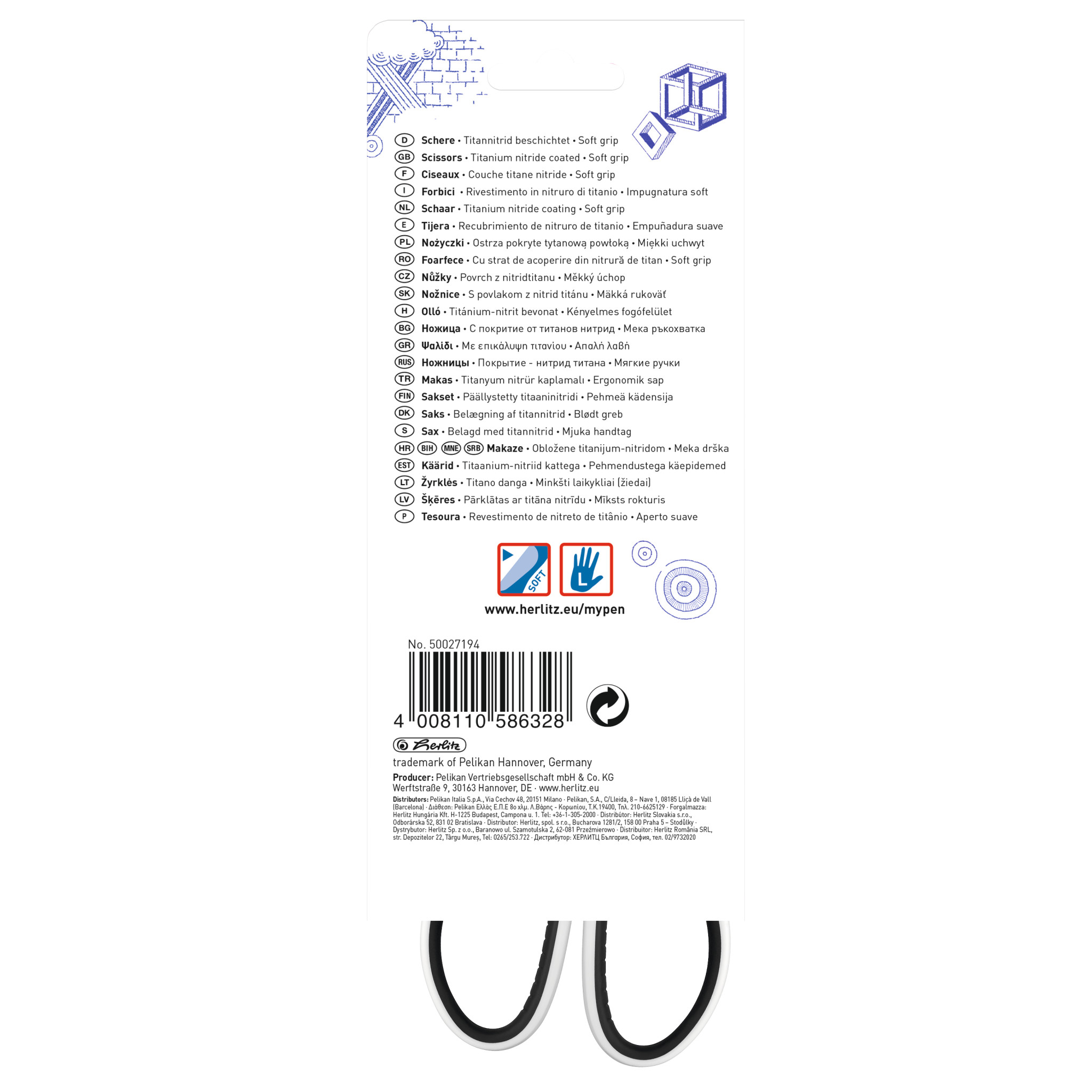 | USP | Schere my.pen; Ergonomischer Griffbereich durch Materialmix; Material Stahl/Kunststoff; Farbige Scherenblätter; Farbe schwarz/weiß, Für Linkshänder |