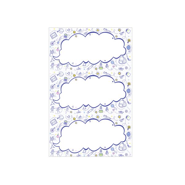 3 sheets of 3 labels self-adhesive single article with insert card europunched, 8,5x16cm price group: A, sheet size 8,4x12,1cm motif back to school cellophaned |