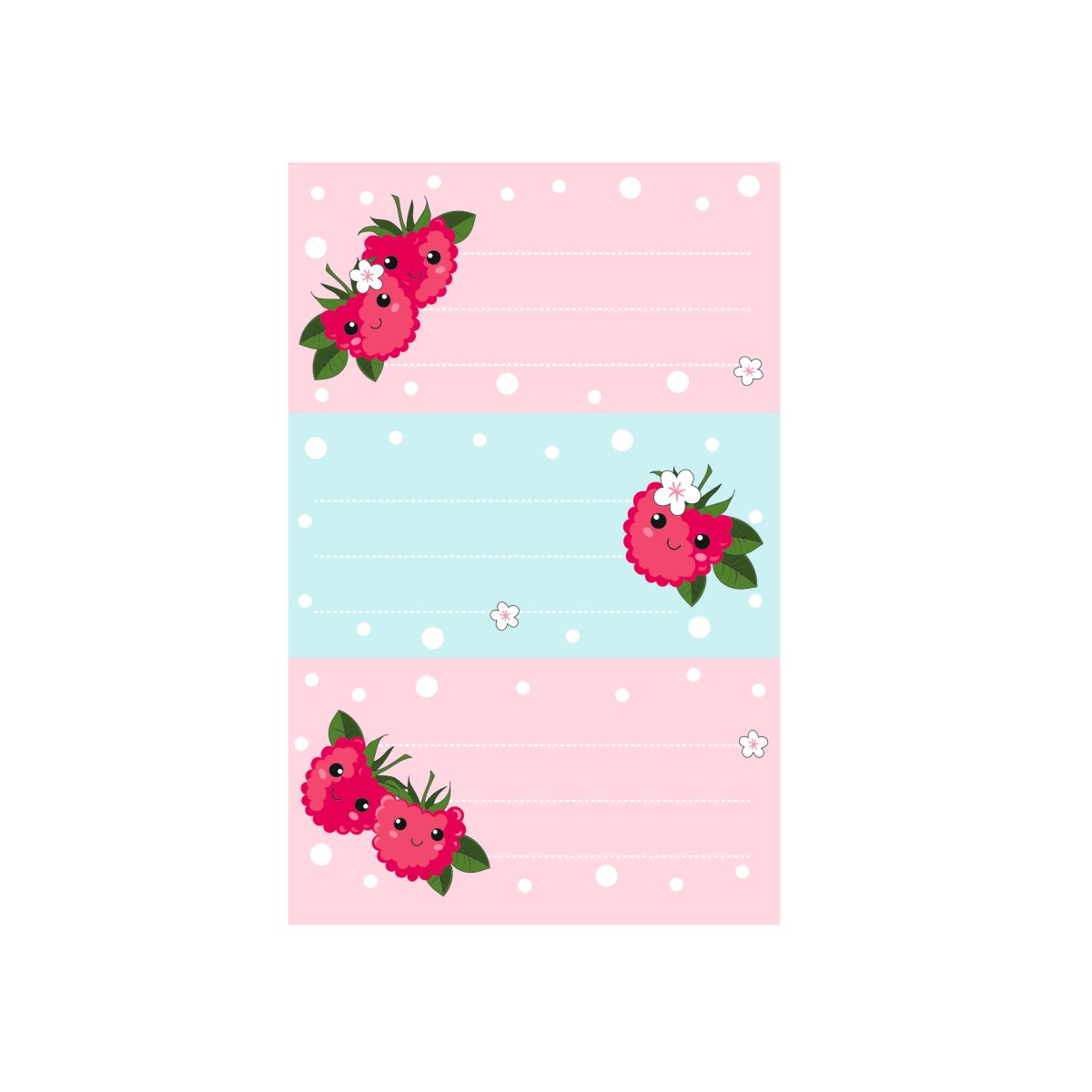 3 sheets of 3 labels self-adhesive single article with insert card europunched, 8,5x16cm price group: A, sheet size 8,4x12,1cm motif raspberry/kawaii cellophaned |