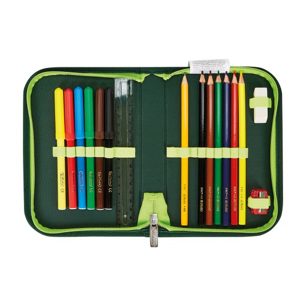 USP | Grundschulrucksack mit ergonomischem Rückenpolster; Leergewicht des Schulranzens unter 800g; verstellbare Schultergurte; IGR-Zertifizierung; Oeko-Tex 100 Standard; flexibler Brustgurt; Innenfach mit Bücherfach; 2 Seitentaschen mit Reißverschluss; Orafol Reflexmaterial; Fidlock Magnetschloss; stabiler Boden mit Kunststoff-Füßen; Befüllung: 16tlg. Etui; Sportbeutel; Faulenzer rund; Brotbox grün; 2 abnehmbare Applikationen mit Klett (Patch); Maße: 38 x 28 x 23 cm; Volumen: ca. 18l |