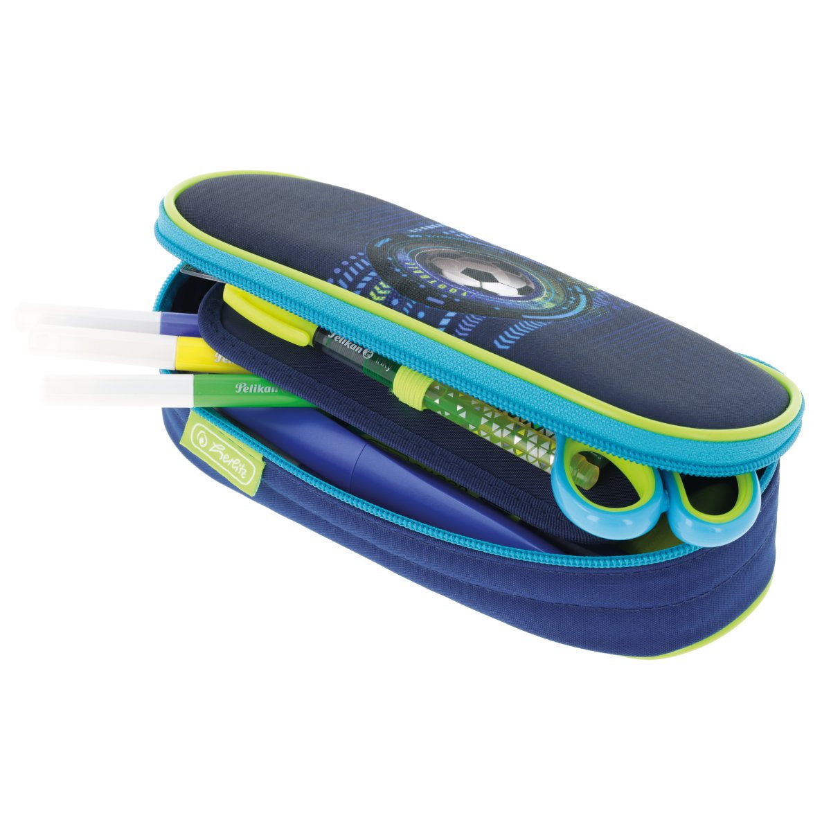 USP | Für Schule; Uni; Beruf oder unterwegs; geräumiges Hauptfach mit Reißverschluss; Allrounder; Innenklappe mit Stifteschlaufen; separates Reißverschlussfach; Maße: 21;5 x 9 x 6 cm; leichter Transport; Material: Polyester; Motiv: Soccer |