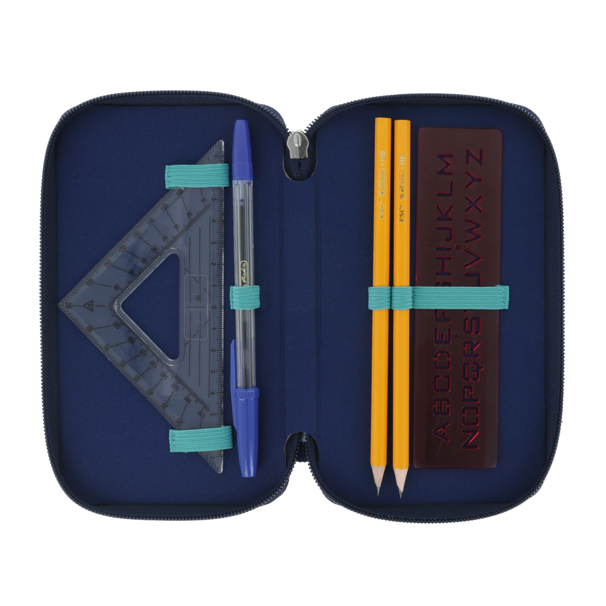 USP | für Schule; Uni oder Beruf; 3 Klappen mit farbigem Reißverschluss; Schlaufen in unterschiedlichen Größen; guter Überblick; leichter Transport; farbiges Innenmaterial farbig passend zum Motiv; farbige Stifteschlaufen; Maße: 19 x 11;5 x 7 cm; Material: Polyester; Motiv: Deep Ocean |