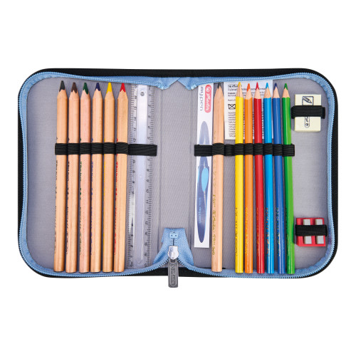 Polyester 38 x 28 x 23 cm Ergonomic back system with IGR certification and „Air Flow“ Magnetic lock, Stable bottom plate Chest strap, removable hip strap 1 removable application, 1 felt dangler Pencil case 16pcs., Sports sac, pencil pouch oval and lunch box with FSC certified pencils |