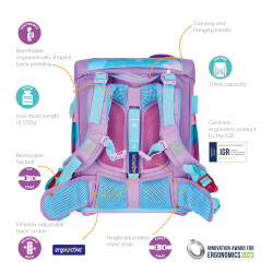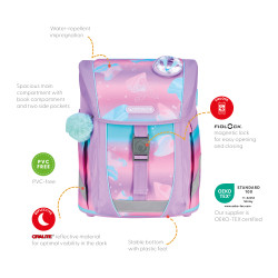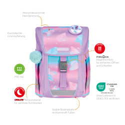 | Polyester 39 x 32 x 23 cm ergoActive® System, IGR certification Magnetic lock, stable bottom plate adjust. chest strap, removable hip strap 1 removable application with Velcro 1 pompom pencil case 16pcs., sports sac, pencil pouch sport, lunchbox with FSC certified pencils |