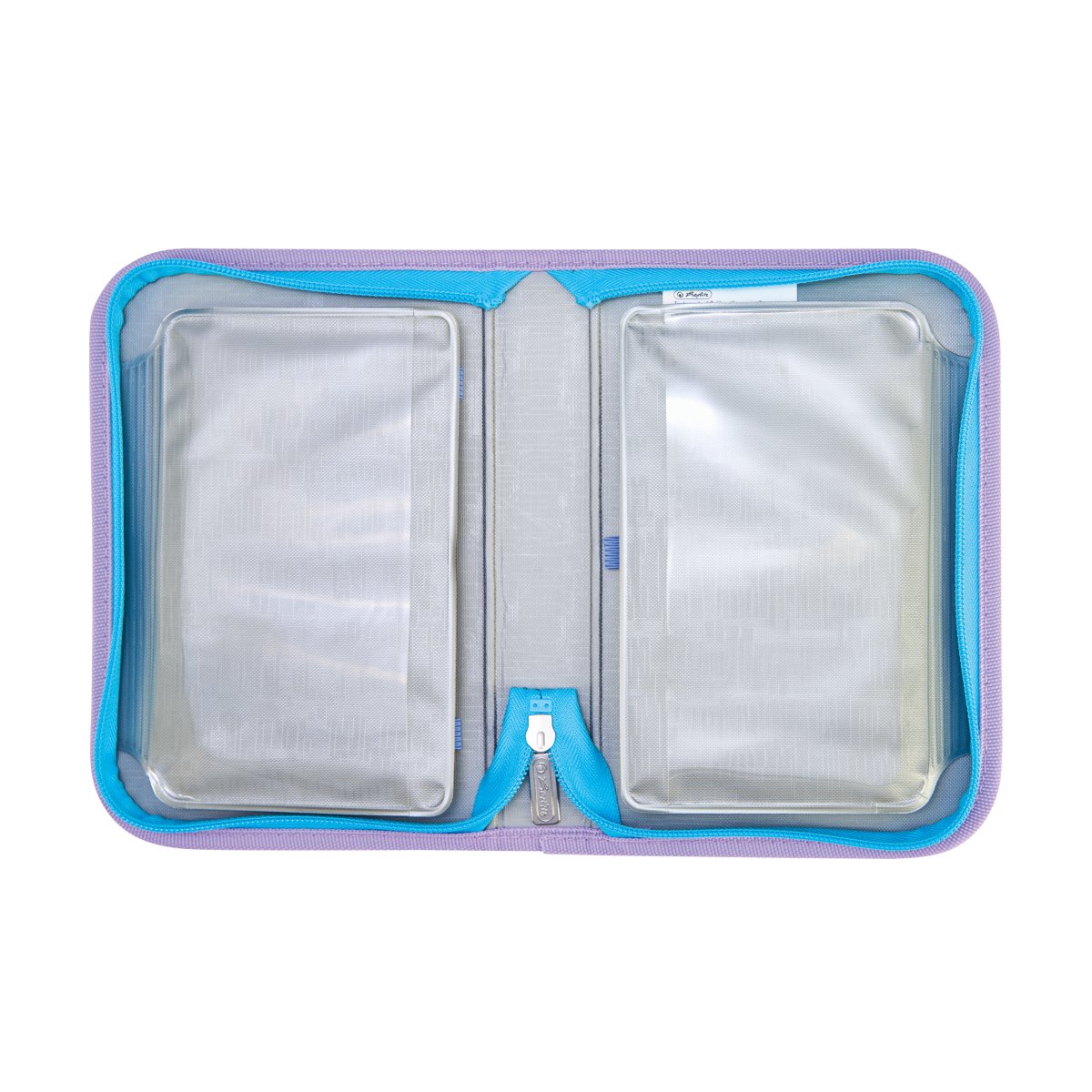 polyester 39 x 32 x 25 cm soft body, click lock with reflector light weight approx. 800g ergonom. backpadding, chest strap adjustable shoulder straps stable bottom plate, Orafol refl. material 1 removable application with velcro, 1 pompom pencil case empty with 2 flaps, pencil pouch oval and sports sac |