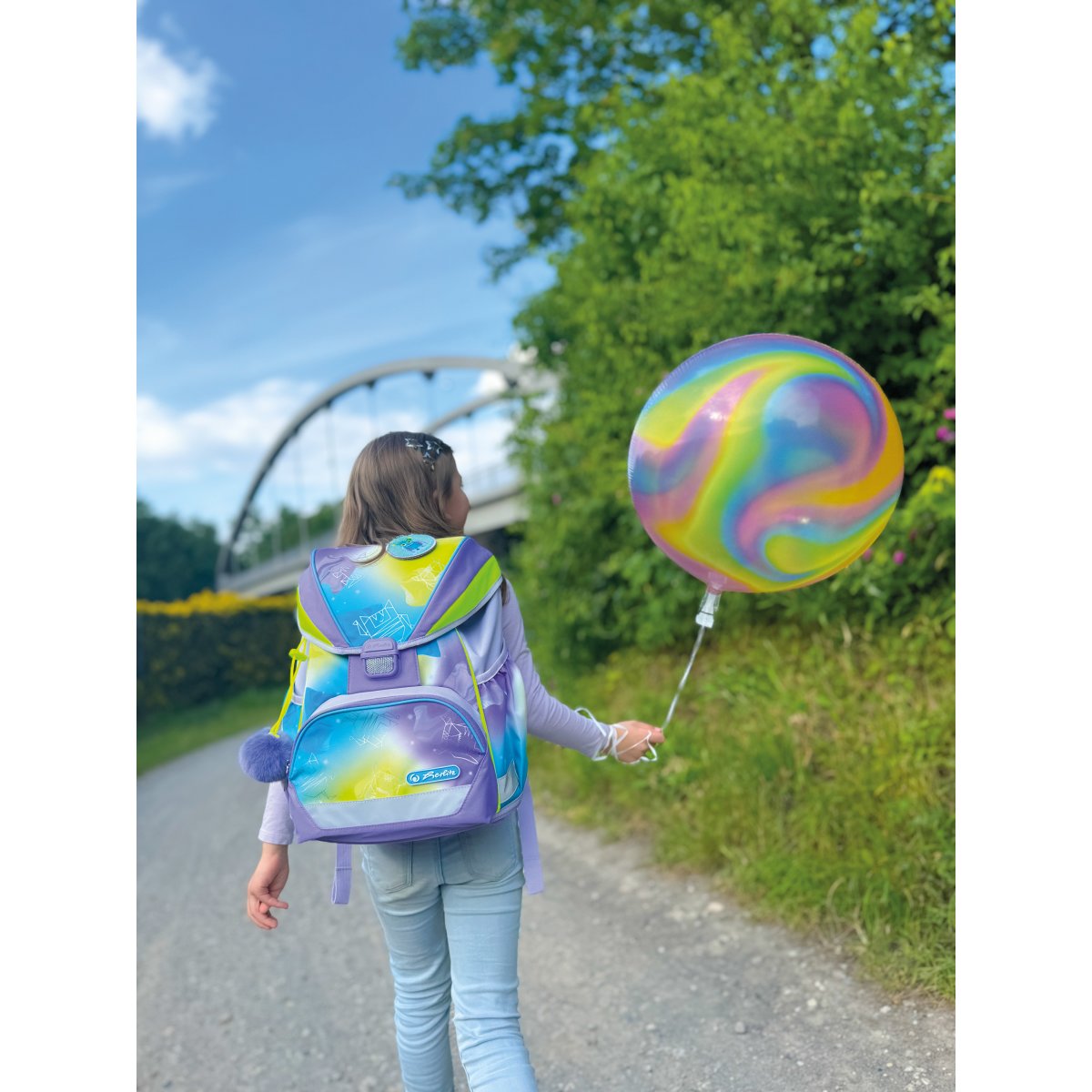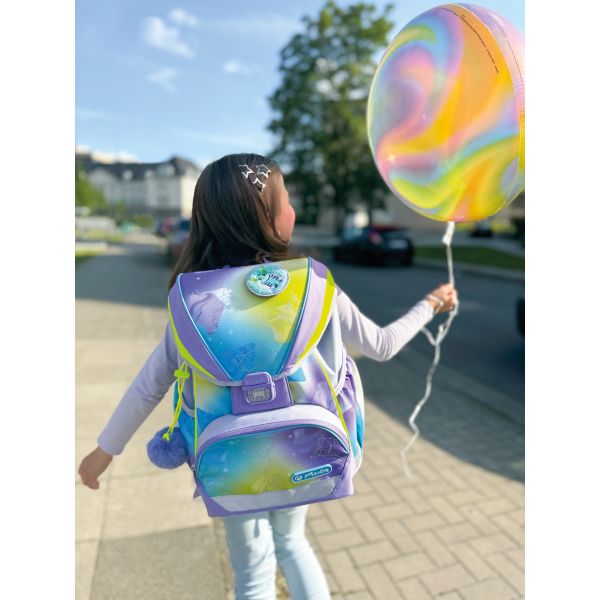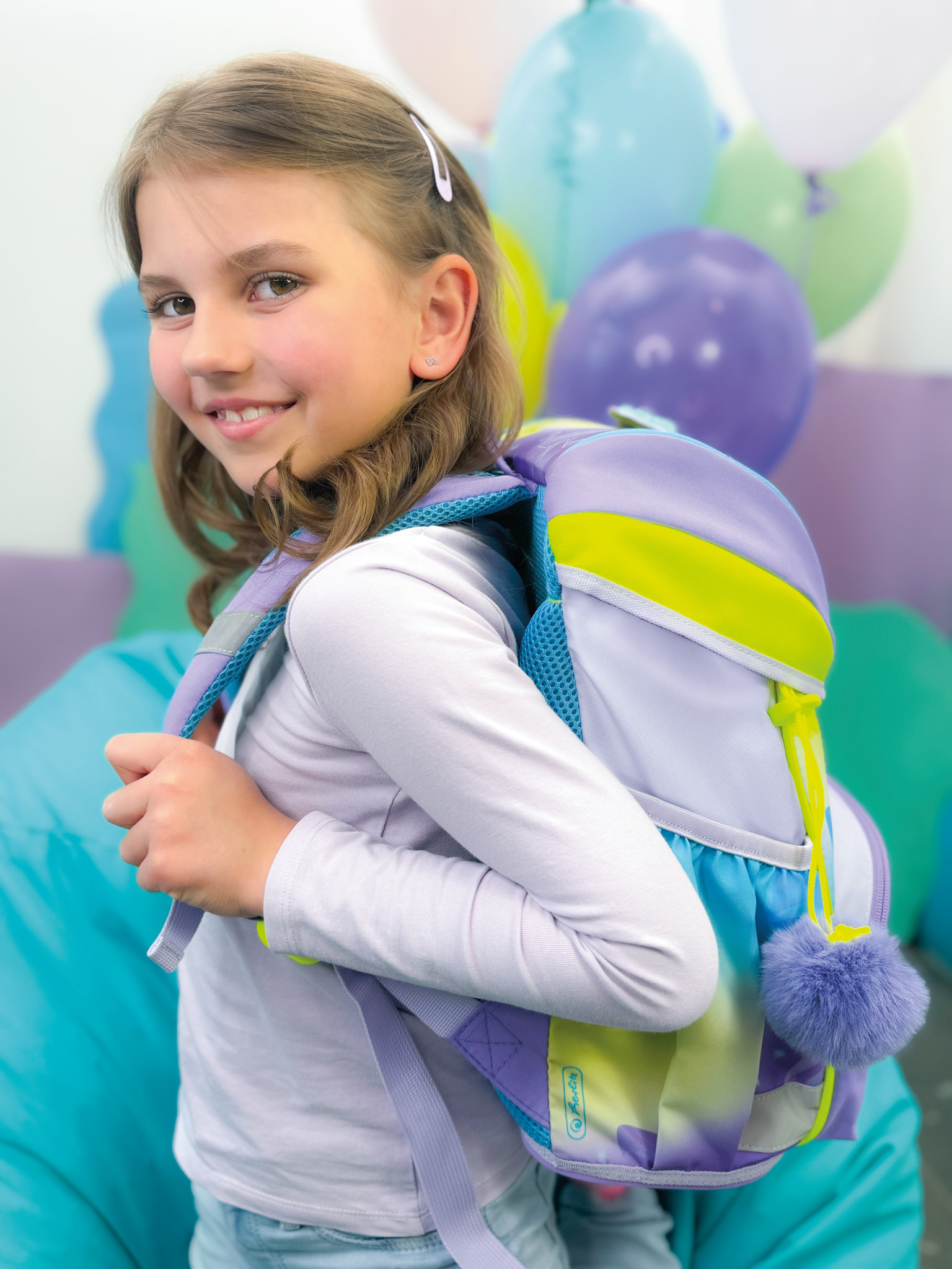 | USP | Eigengewicht unter 800g; ergonomisch geformte Rückenpolster; verstellbare Schultergurte; höhenverstellbarer Brustgurt; angenehme Passform; Orafol Reflexmaterialien; Klickschloss mit Reflektor; geräumiges Innenfach mit separatem Bücherfach; 1 Fronttasche; 2 Seitentaschen; stabile Bodenplatte; unbefülltes Schüleretui mit 2 Klappen; Faulenzer oval; Sportbeutel; Maße: 39 x 32 x 25 cm; Gewicht: ca. 800g; Volumen: ca. 22l; Material: Polyester; Applikation: 1 abnehmbares Patchies, 1 Pompom |
