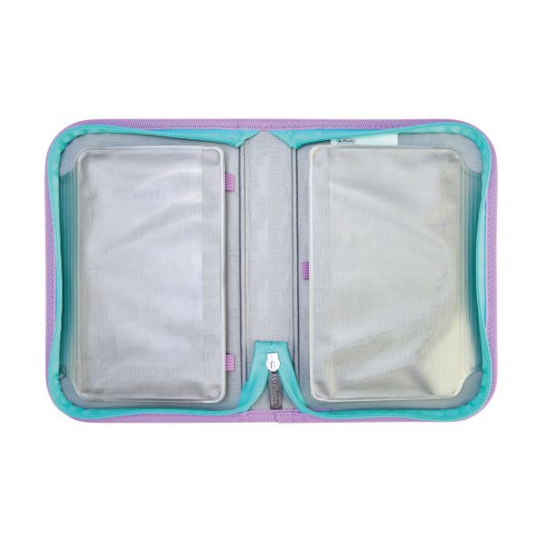 polyester 36 x 28 x 21 cm soft body, click lock with reflector light weight approx. 750g ergonom. backpadding, chest strap adjustable shoulder straps stable bottom plate, Orafol refl. material 1 removable application with velcro, 1 pompom pencil case empty with 2 flaps, pencil pouch oval and sports sac |